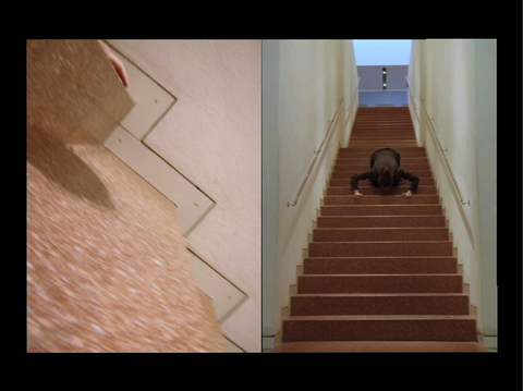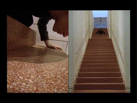 Videoinstallation5:30 minOn my knees, kissing the stairs to the basement of the Bundeskunsthalle Bonn. Upstairs and downstairs.