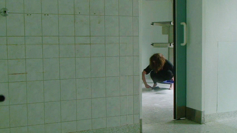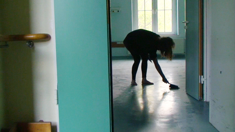 I sweep the floors of an empty hospital in Magdeburg. Installation of the dust in a room