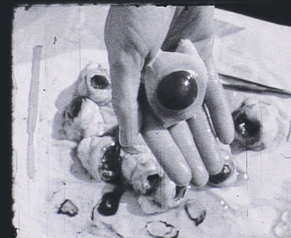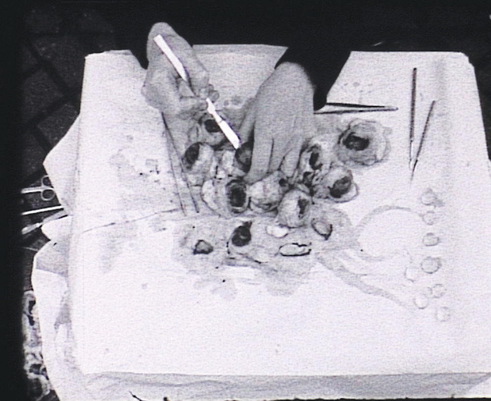 Super8mm-Film1:38 mionDissection of calf-eyes. Lenses appear like pearls.(Soloexhibition Teapot Gallery Cologne)
