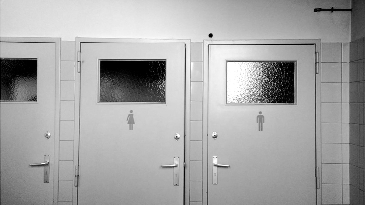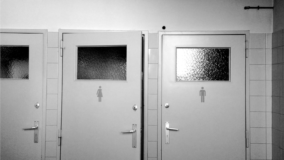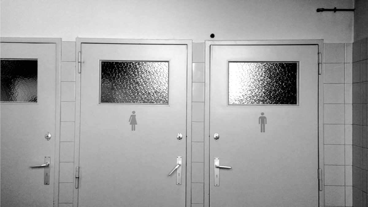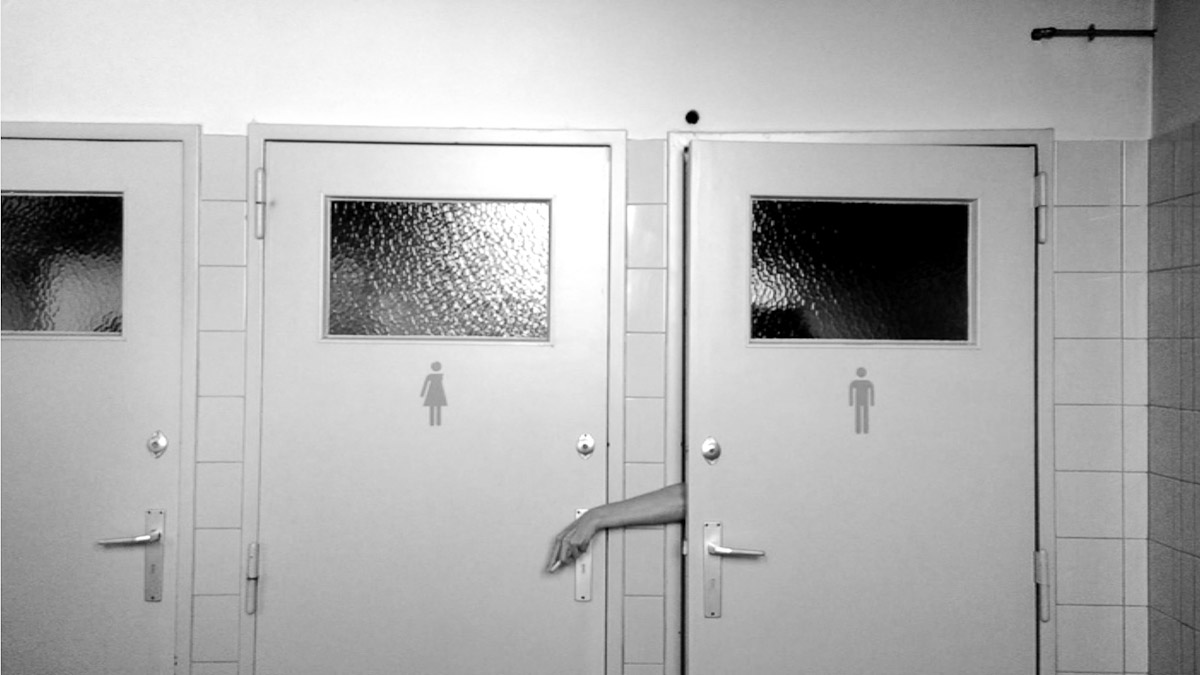 Videoperformance6:40 min Actus II - Residency in La Fabrique de Theatre, BelgiumSite-specific Videoperformance with the two toilet doors which make grand noise and speak to each other. A conversation.