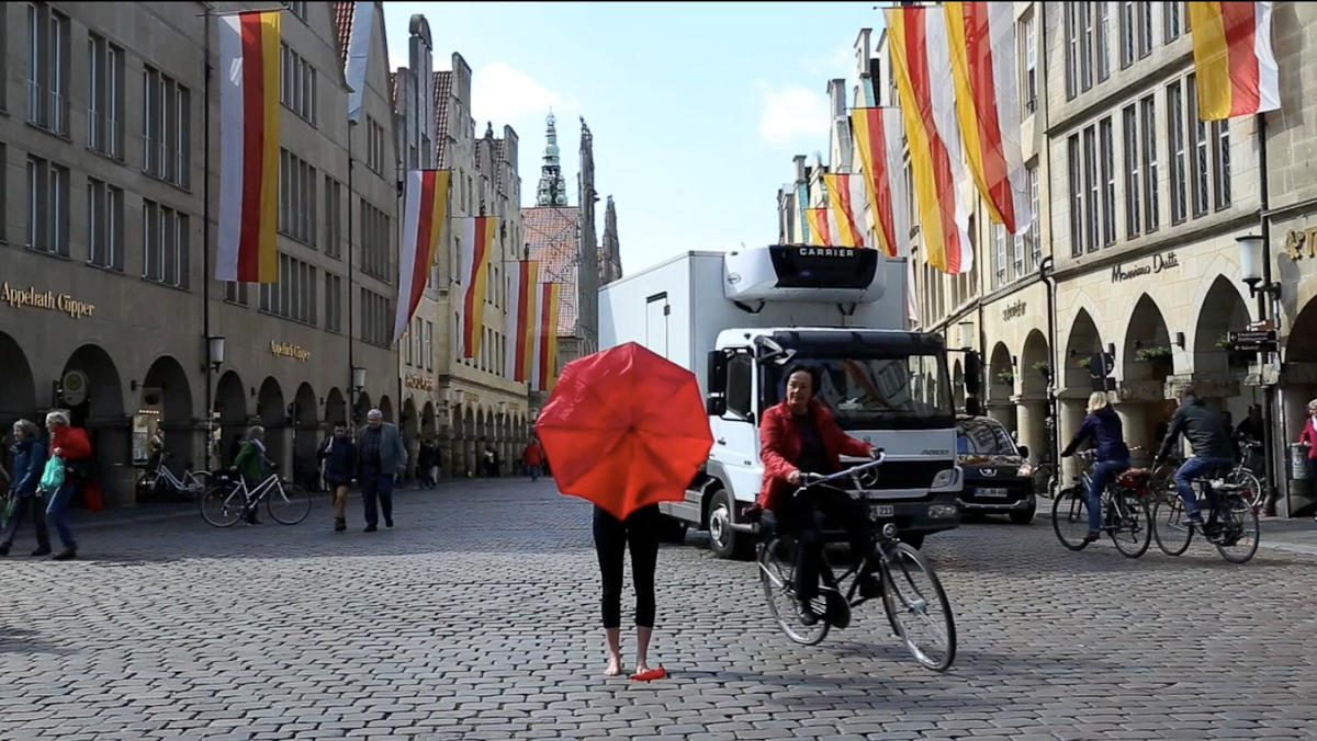 Solo exhibition from 6.6. - 3.7. 2015 in the space of FAK. Space related works, Videoperformances shot in the city of Münster or in the house of FAK.