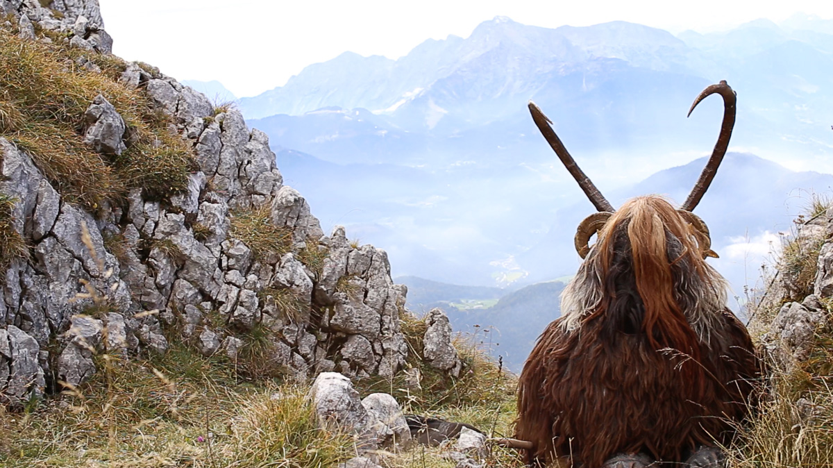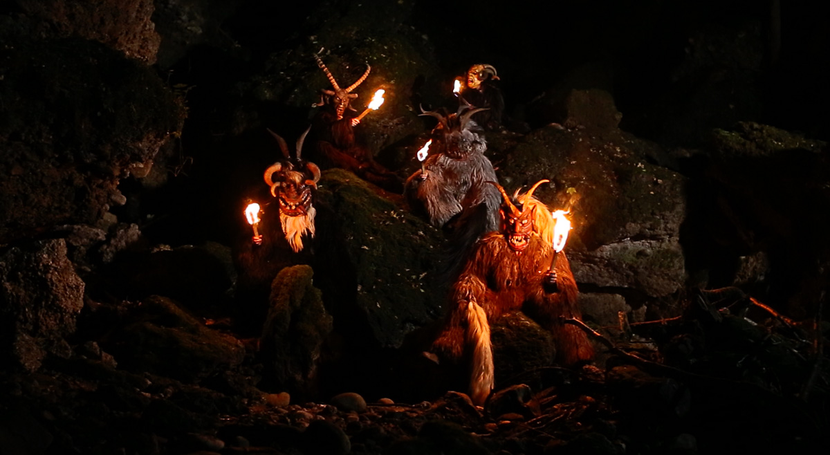 Weibliche mysteriöse Charaktere, Perchten und der Kaiser selbst collagieren zu einer surrealen Szene. Das Ende der Welt in seiner Schönheit.