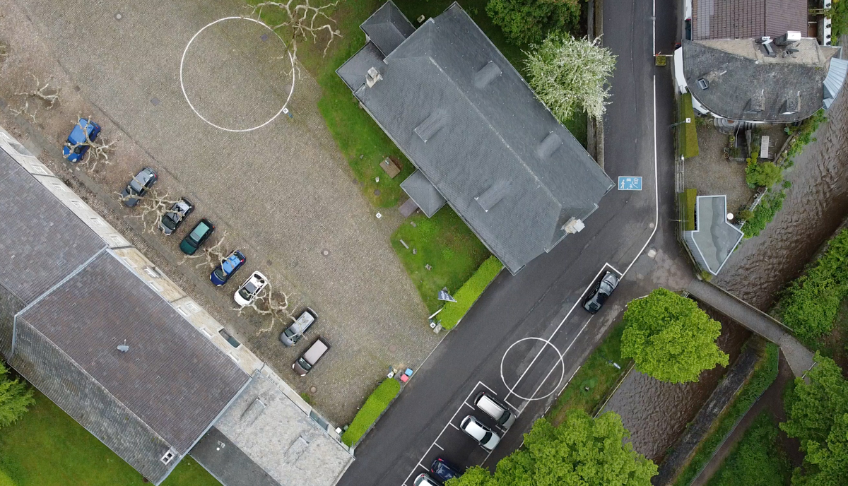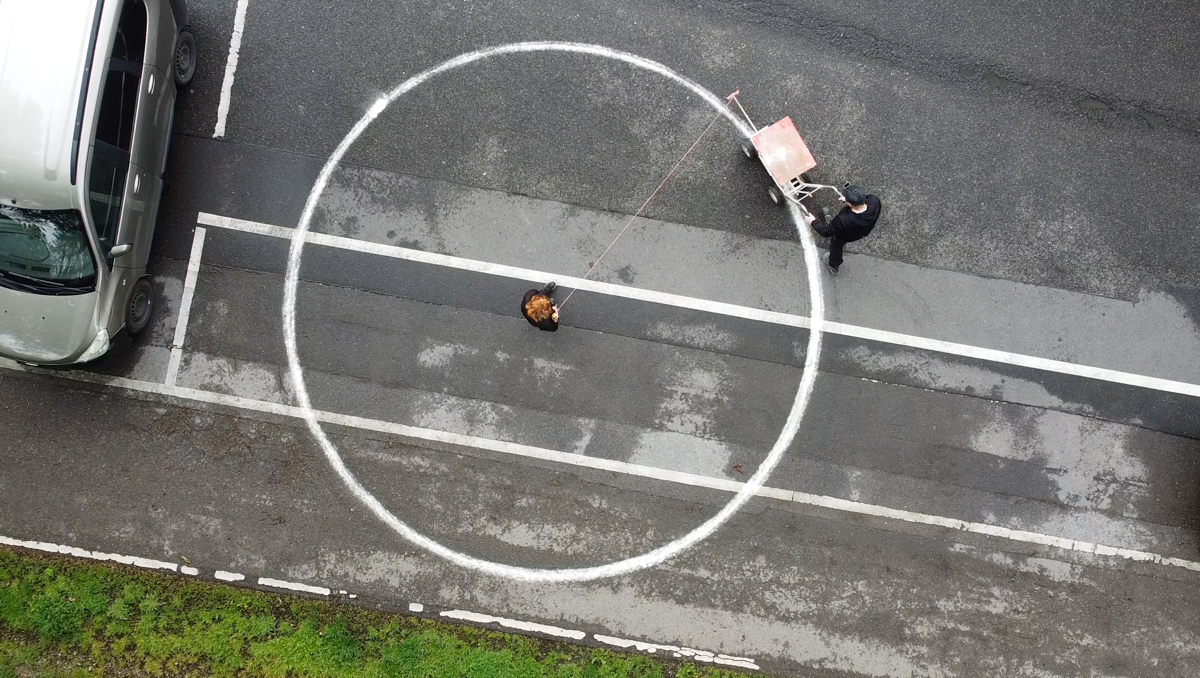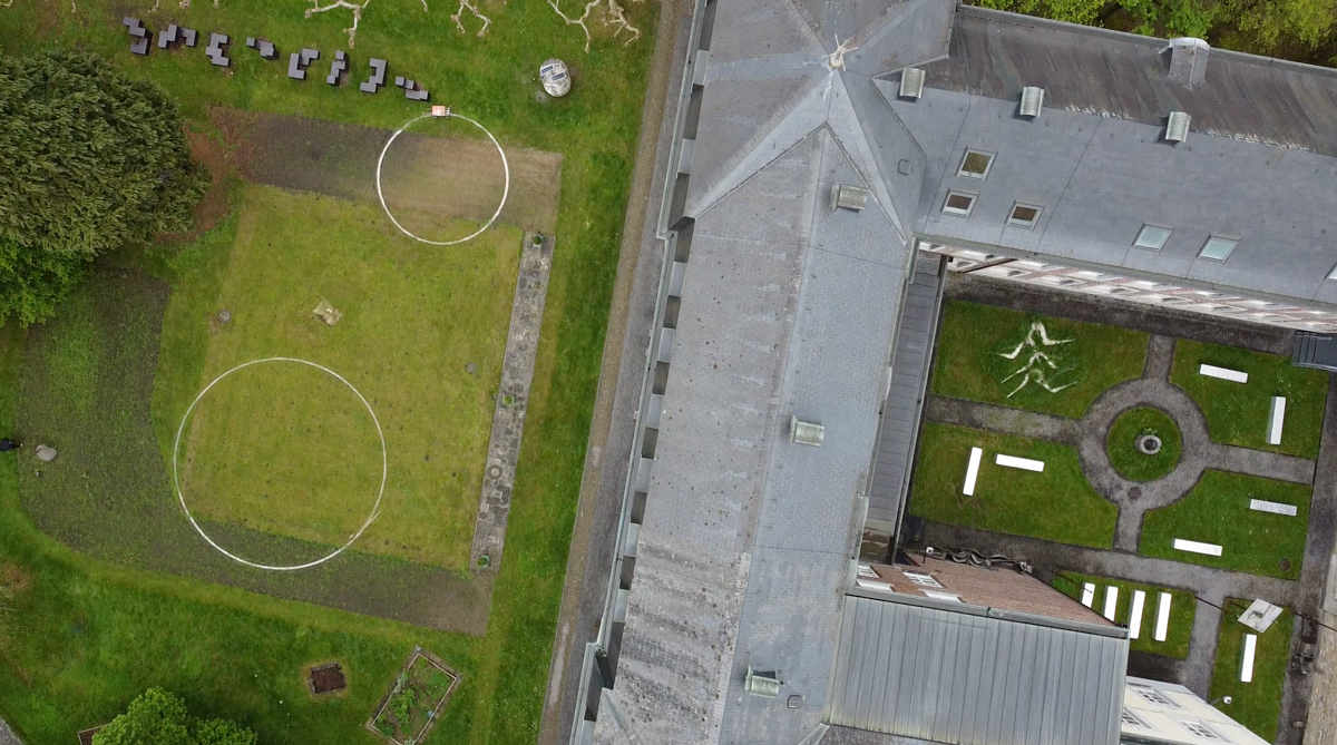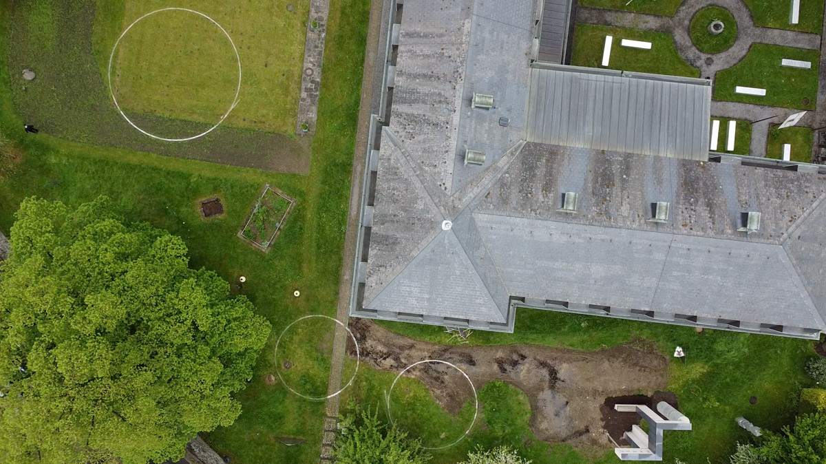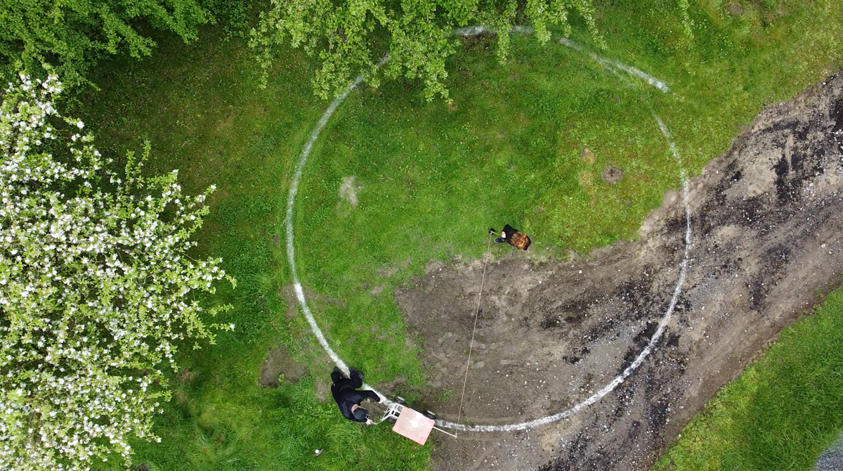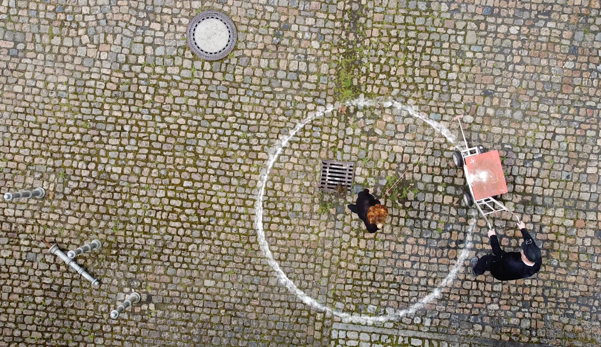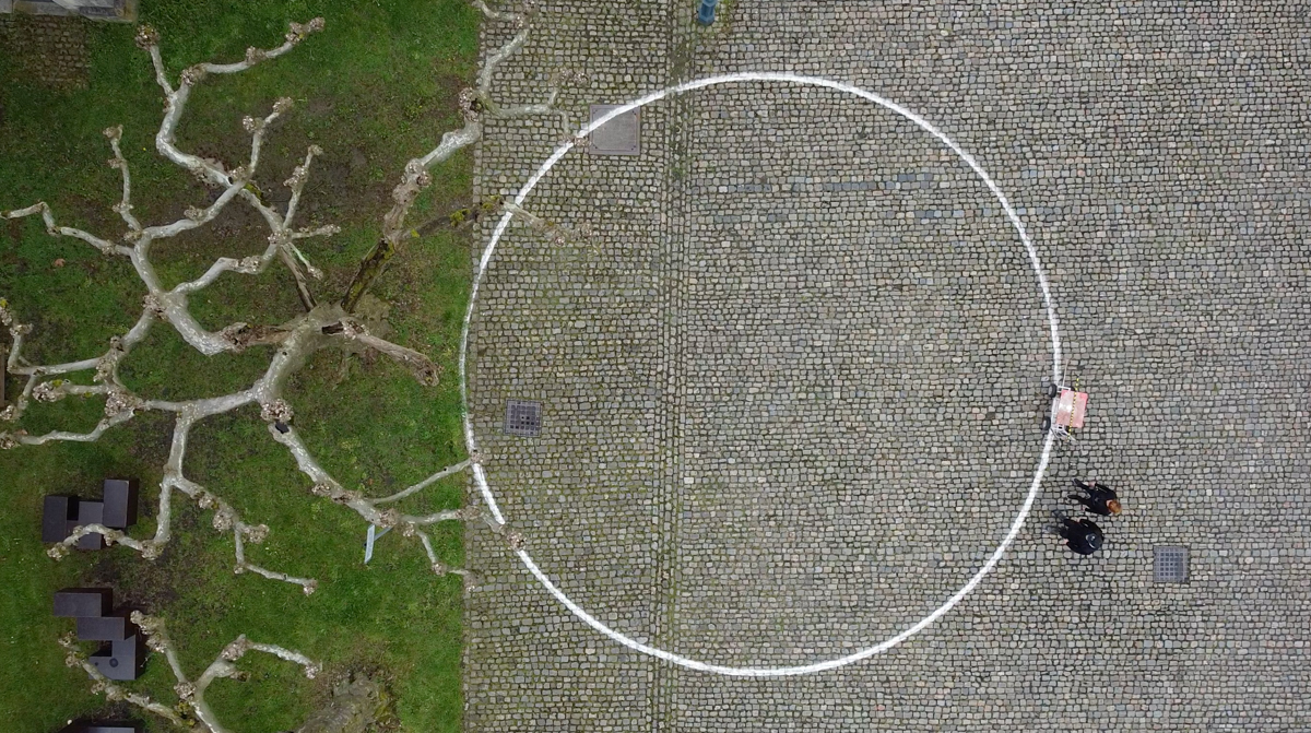 Ephemeral chalk drawings as intervention. Marking hotspots, playing fields, constellations in the space of the garden of Kunsthaus. After yesterday's heavy rain during the opening you still find some marks in the ground. Or you watch the videoinstallation in the Foyer.