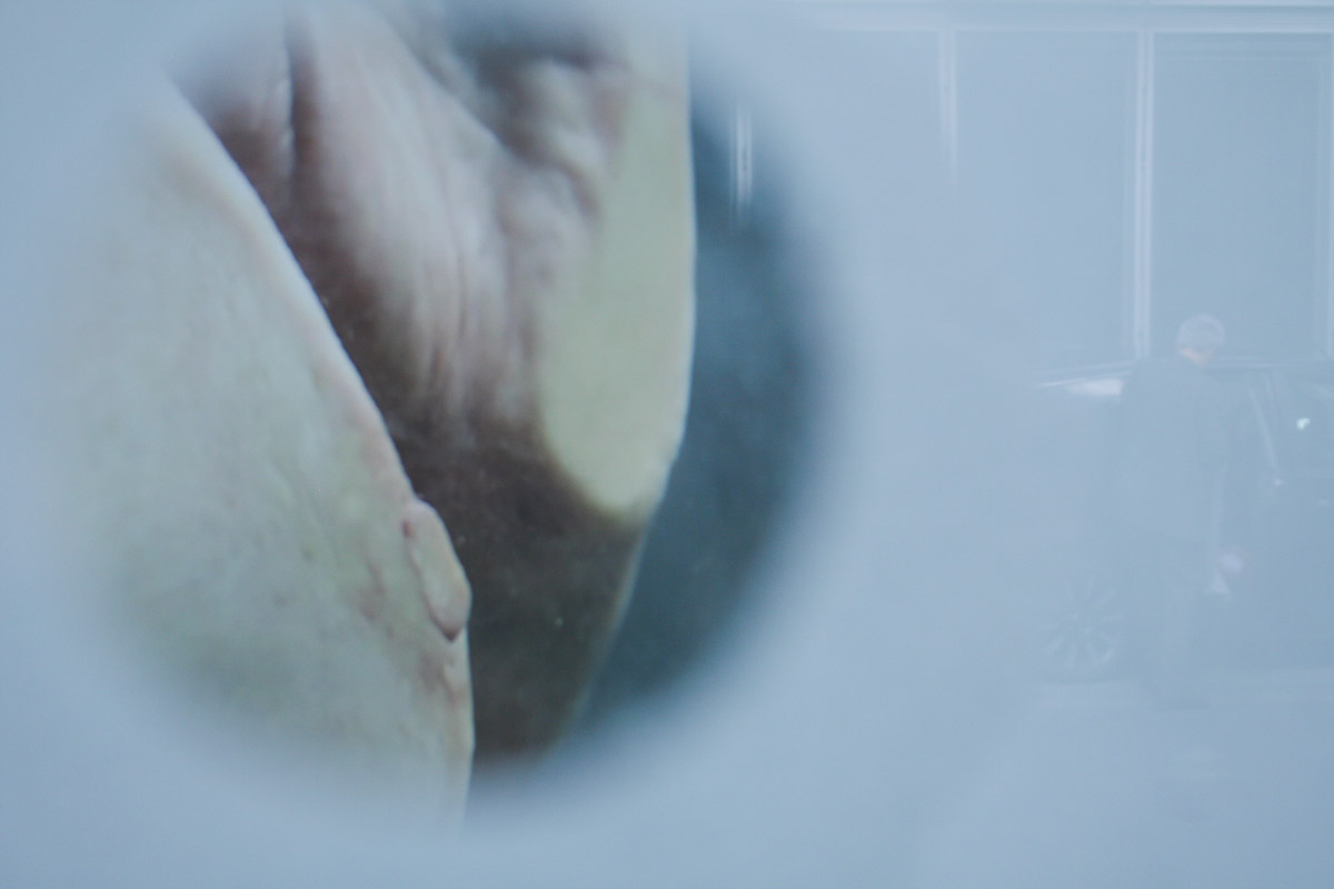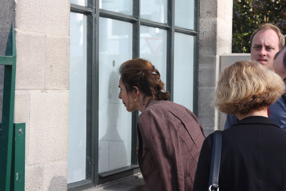 "Die Künstlerin spielt mit der ursprünglichen Funktion des Pförtnerhäuschen als Ort der Be- und Überwachung im öffentlichen Raum. Durch Verhüllung und Enthüllung regt sie den Vorbeilaufenden zum Voyeurismus an und stellt somit Fragen nach möglicher Privatsphäre im städtischen Raum."