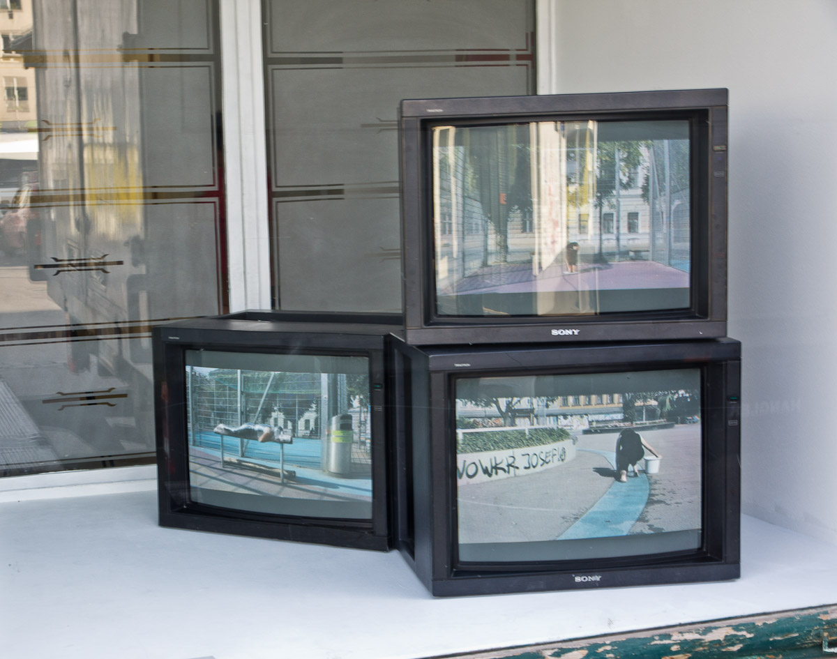 Space related installation for KIS. Working with found objects and objects which are related to the Yppenplatz, Vienna. Working on location for two weeks and shooting videoperformances.