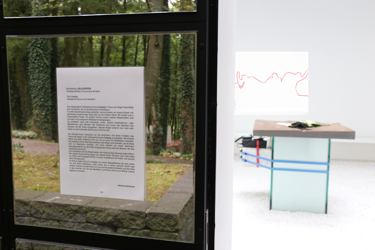 Entwickelt wurde diese Installation für das Jahreskünstlerstipendium für Jellyspoor (Andreas Gehlen & Evamaria Schaller) von Pütz-Roth, Bergisch Gladbach. Im „Haus der Klage“, Pütz-Roth | Architektin Dagmar Ditzer