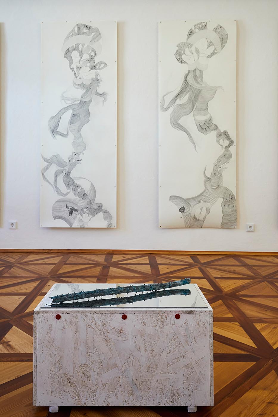Die Galerie3 setzt im Rahmen der ersten Ausstellung 2021 zwei sehr unterschiedliche Positionen in Beziehung: die Zeichnerin Michaela Polacek und die Performerin und Medienkünstlerin Evamaria Schaller.