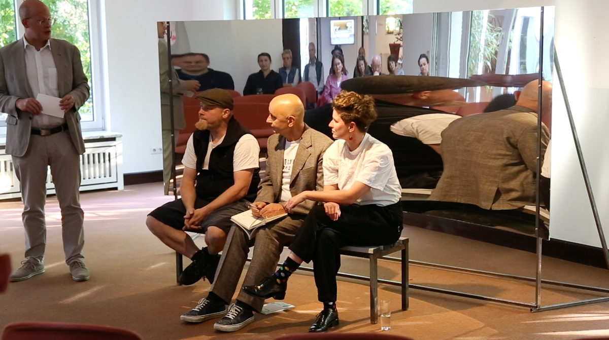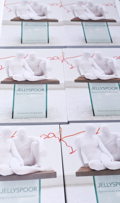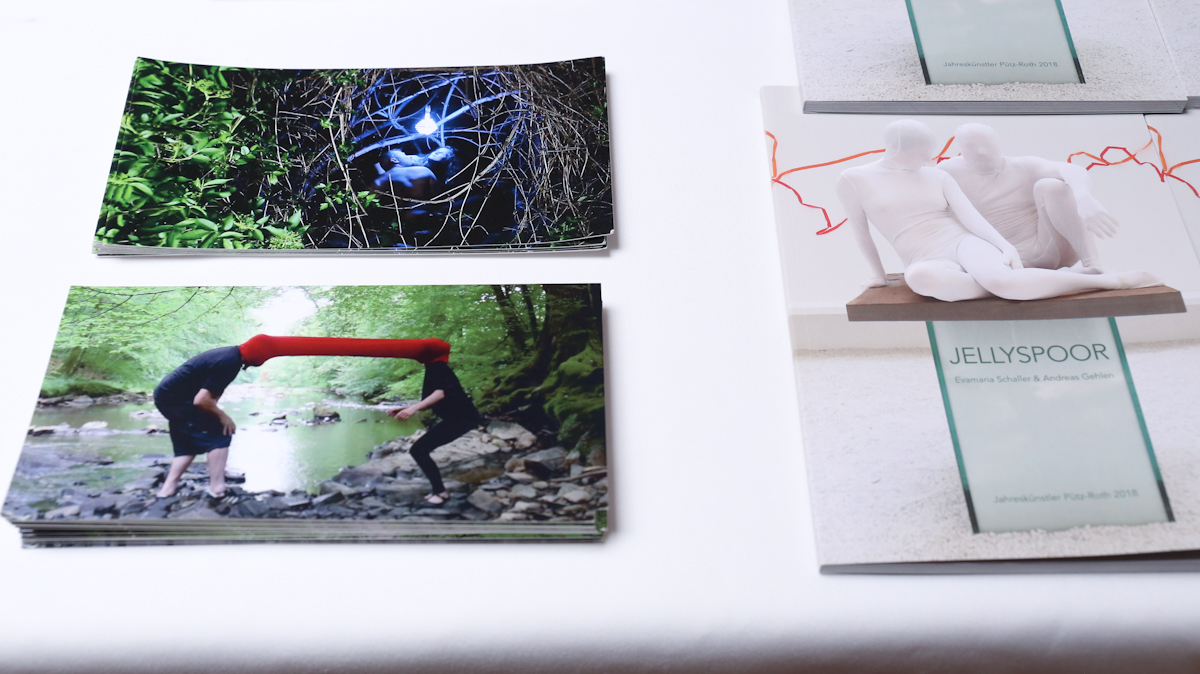 The artists of the year of Pütz Roth foundation, the artist duo JELLYSPOOR - Evamaria Schaller & Andreas Gehlen - will present their works and give an insight into their artistic work in a three-way discussion with the independent curator Konstantin Adamopoulos in front of their dialogue sculpture.
