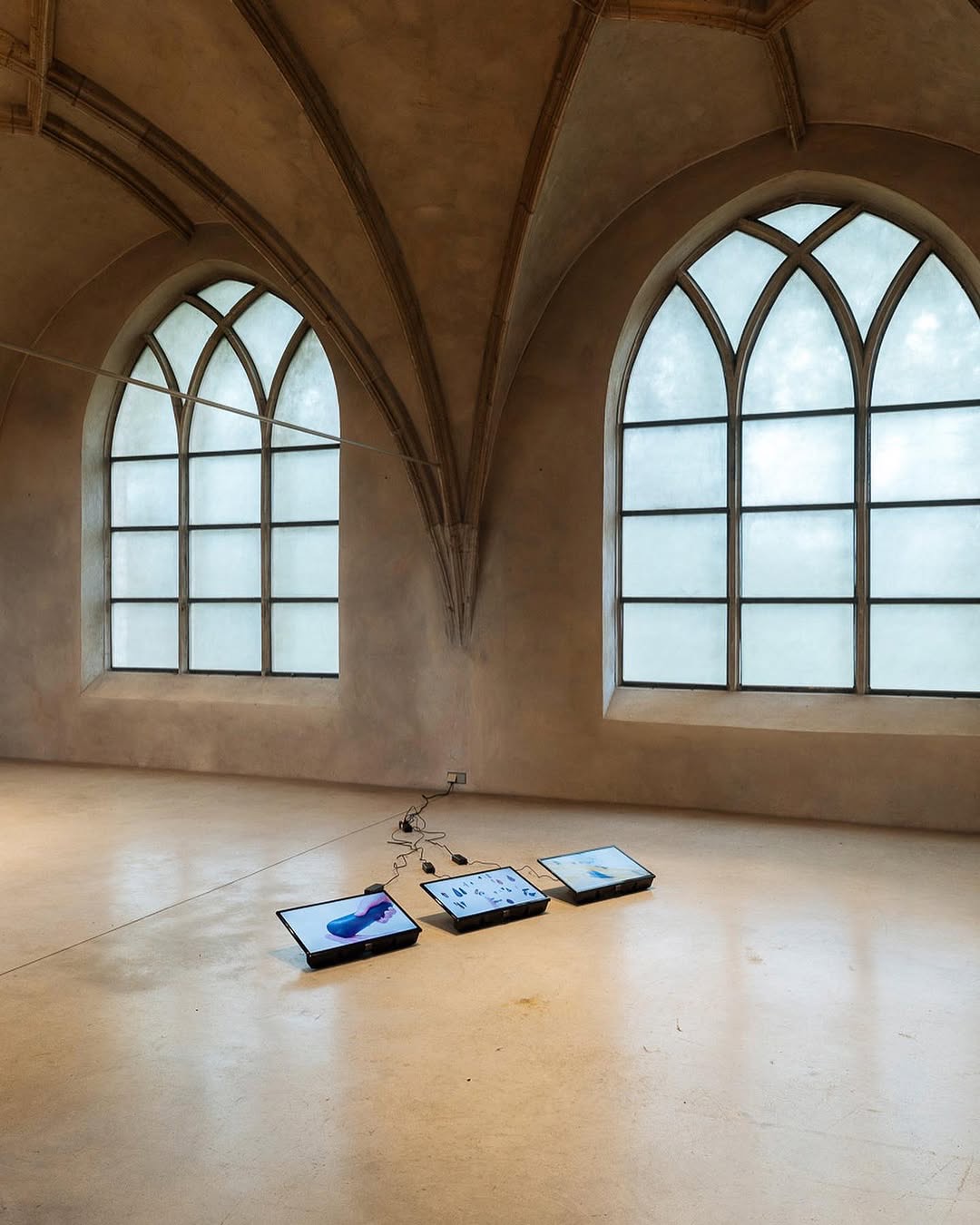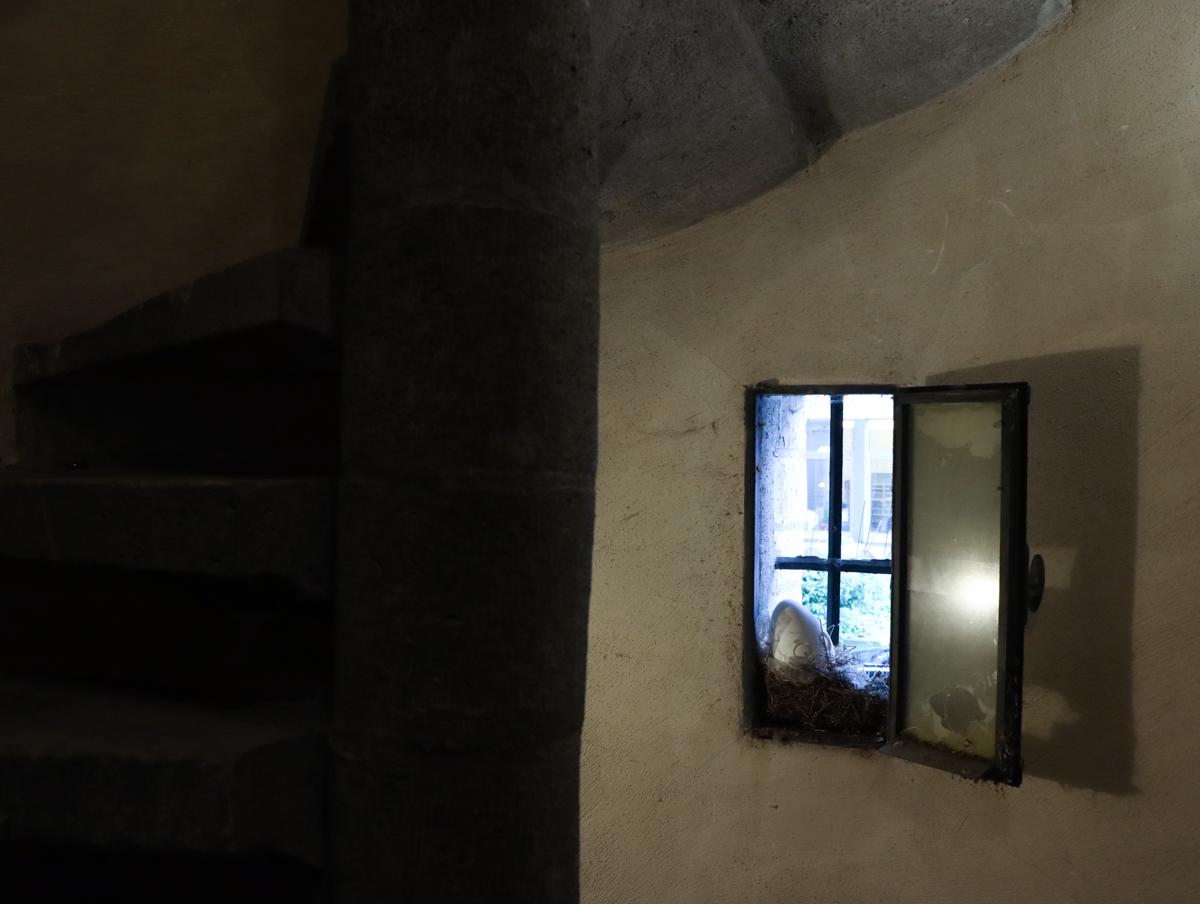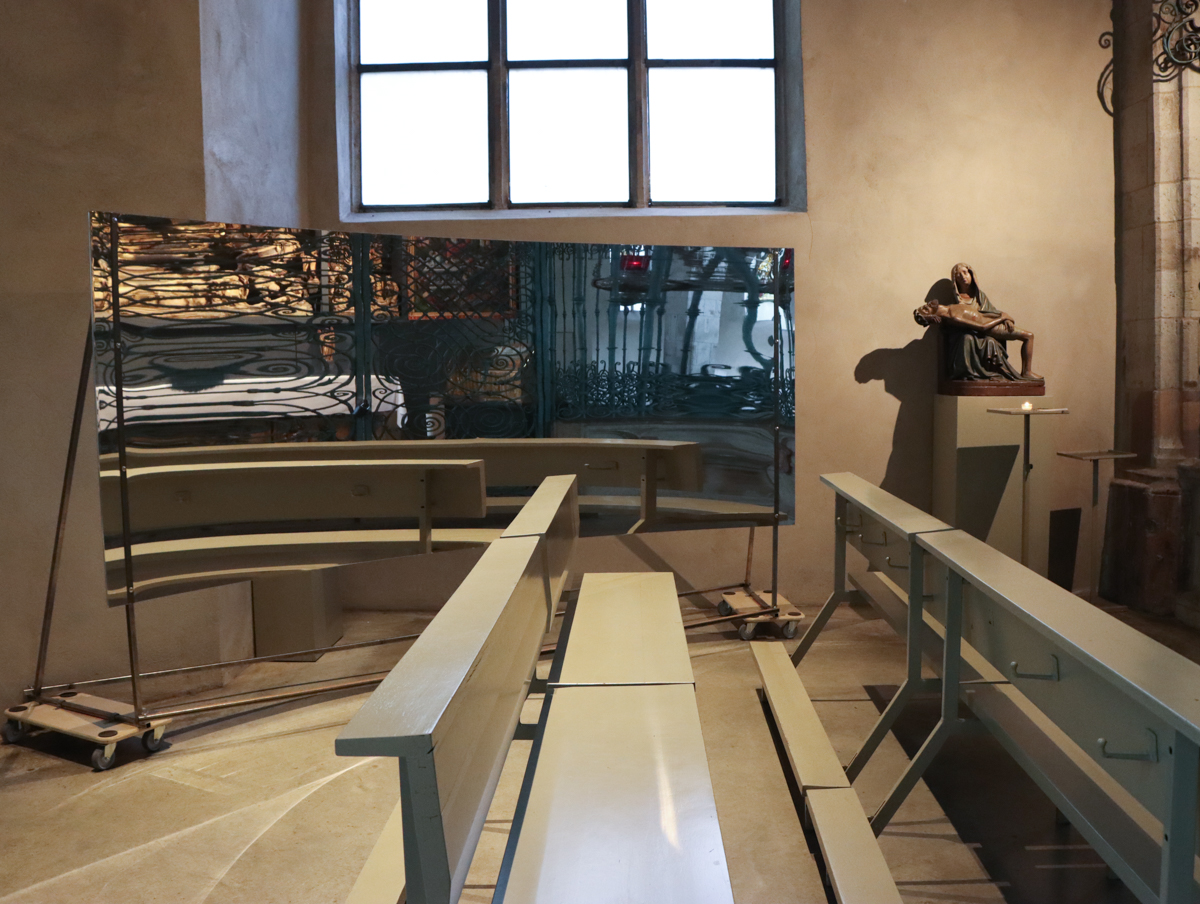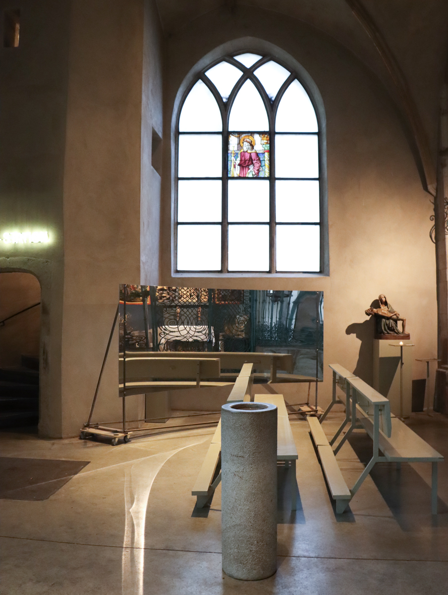 Das Künstlerkollektiv JELLYSPOOR richtet den Blick zurück auf die gemeinsame Zeit in Sankt Peter, nach unten und vorne. Das Spiel mit den zeitlichen und räumlichen Ebenen reicht von den frühen Anfängen der Menschheits- und Zivilisationsgeschichte bis unter den Boden von Sankt Peter.