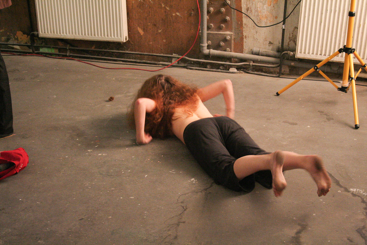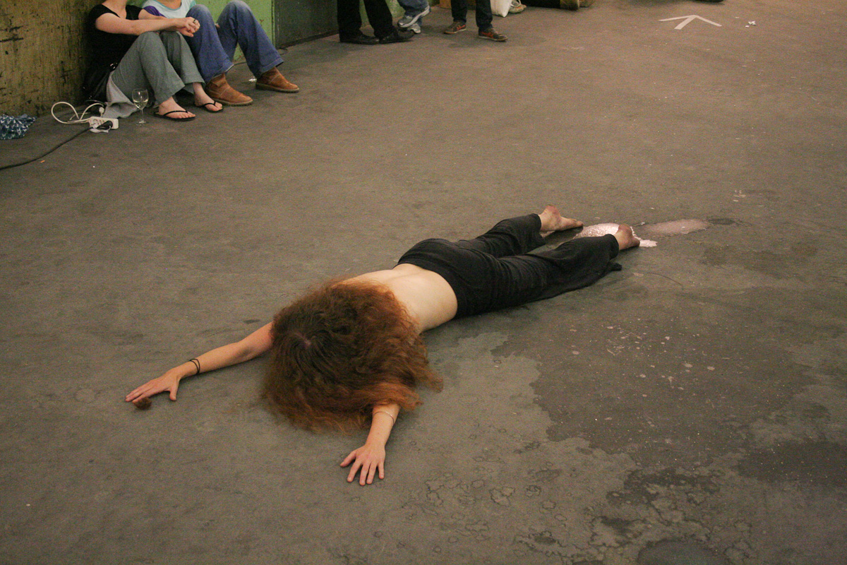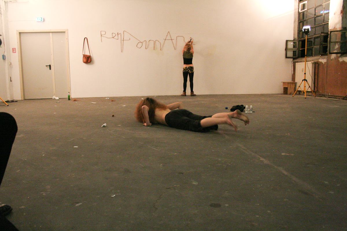 BerlinCombing hair with fingers. The ripped out hair is formed into a ball. Screaming lound. The hairball is blowed through the room.