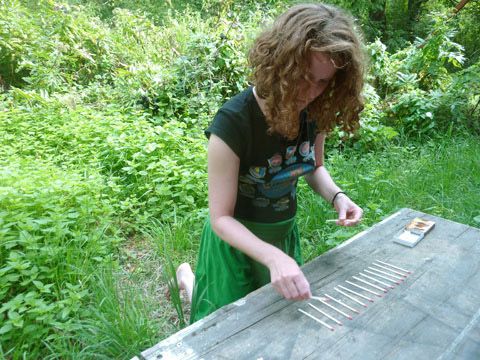 Taking a box of matches. Sorting them and playing Mikado with an own set of rules until only one match is left.