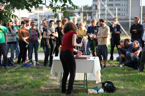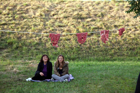 Rund um das Feld, am Wasser, Performance Laboratorium Linzcurated by Elisa AndessnerA flank of a veil is cut, tenderized and hung onto a rope.