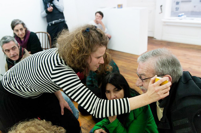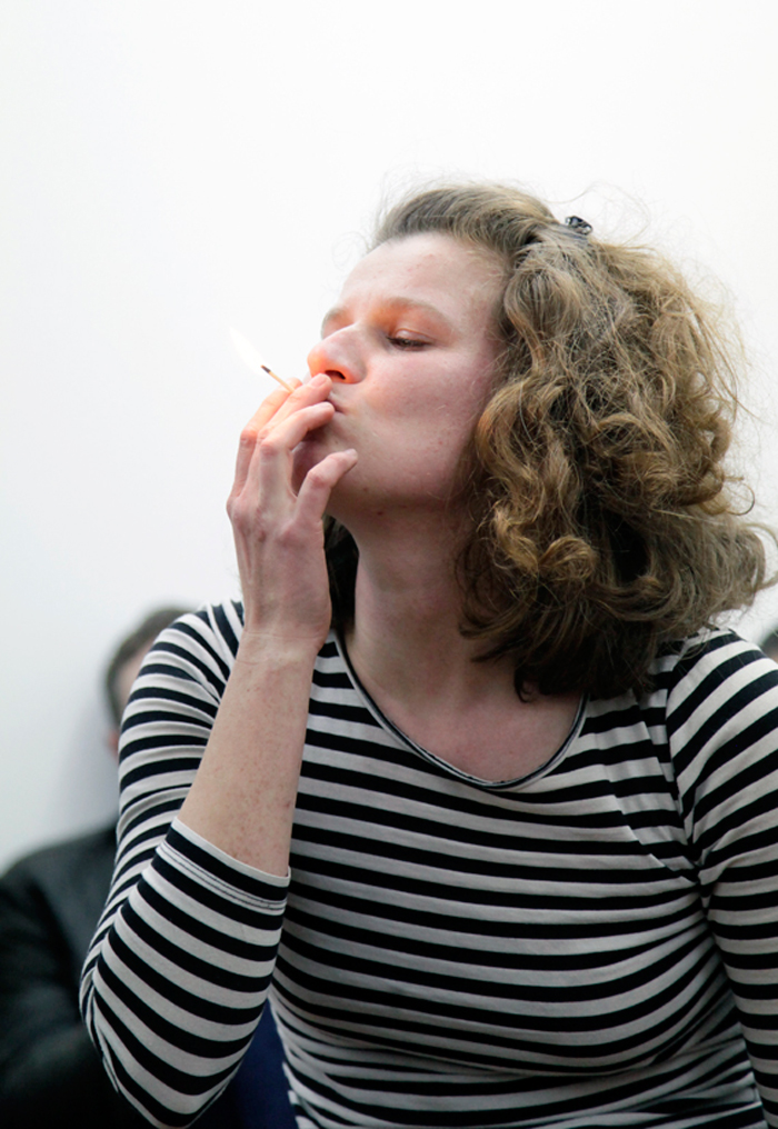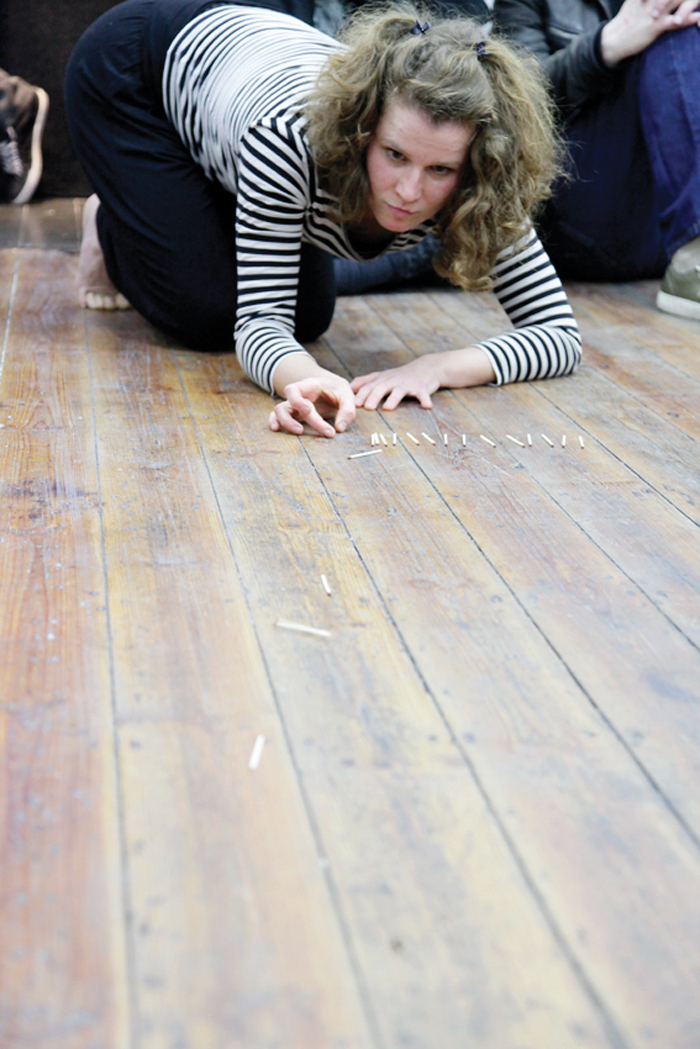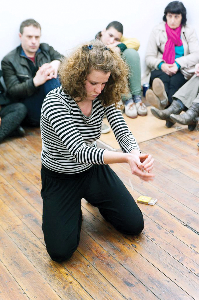 I use a "united match"-box (a Belgian match-brand) shake it to listen to the sound. I let the people also listen to the rustle of the matches in the box. I put the box into the mounth open the box with my tongue, shake my head that all the matches fall out of the box. I play a kind of Mikado-game with own rules until only one match is left. I light the match with my mouth.