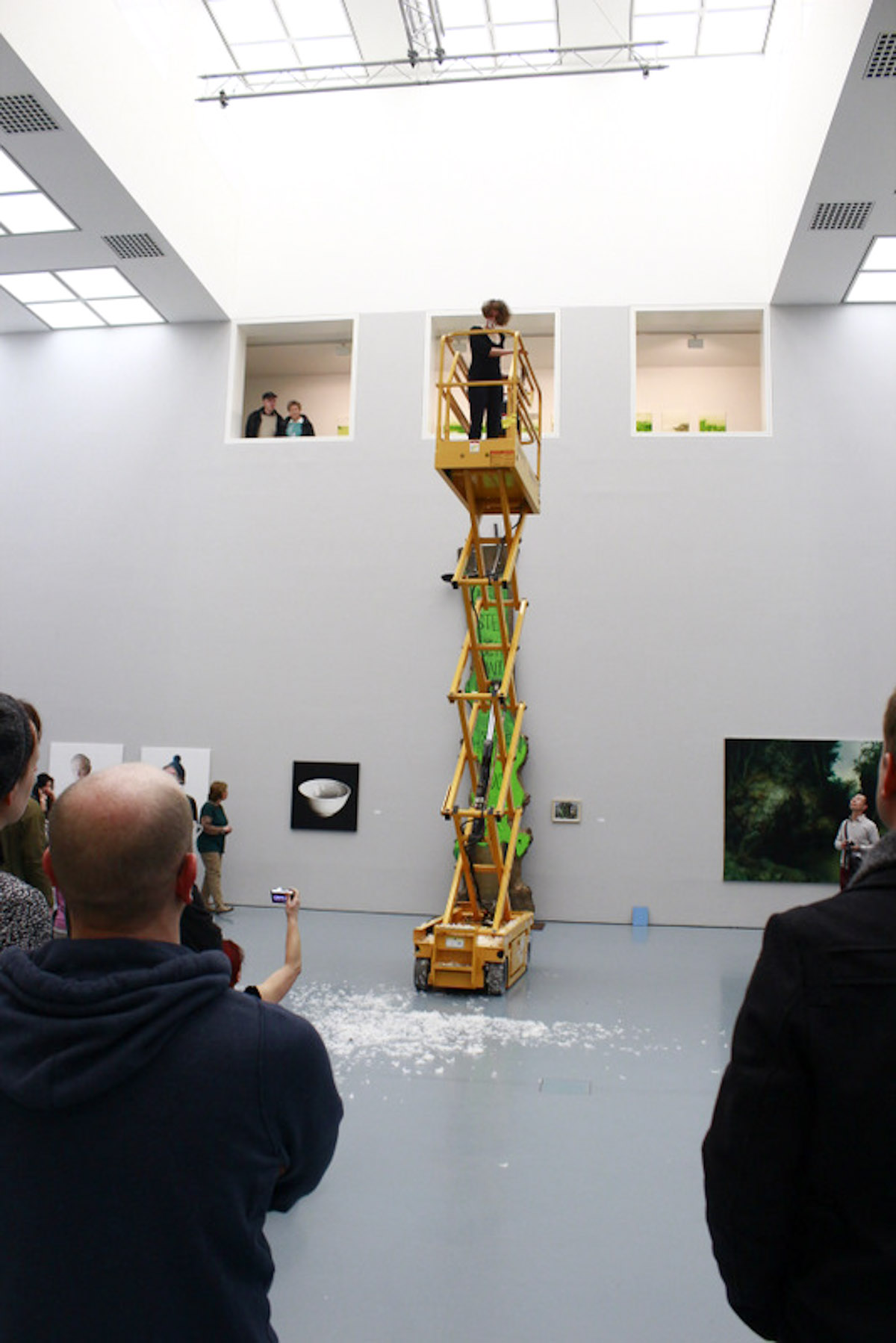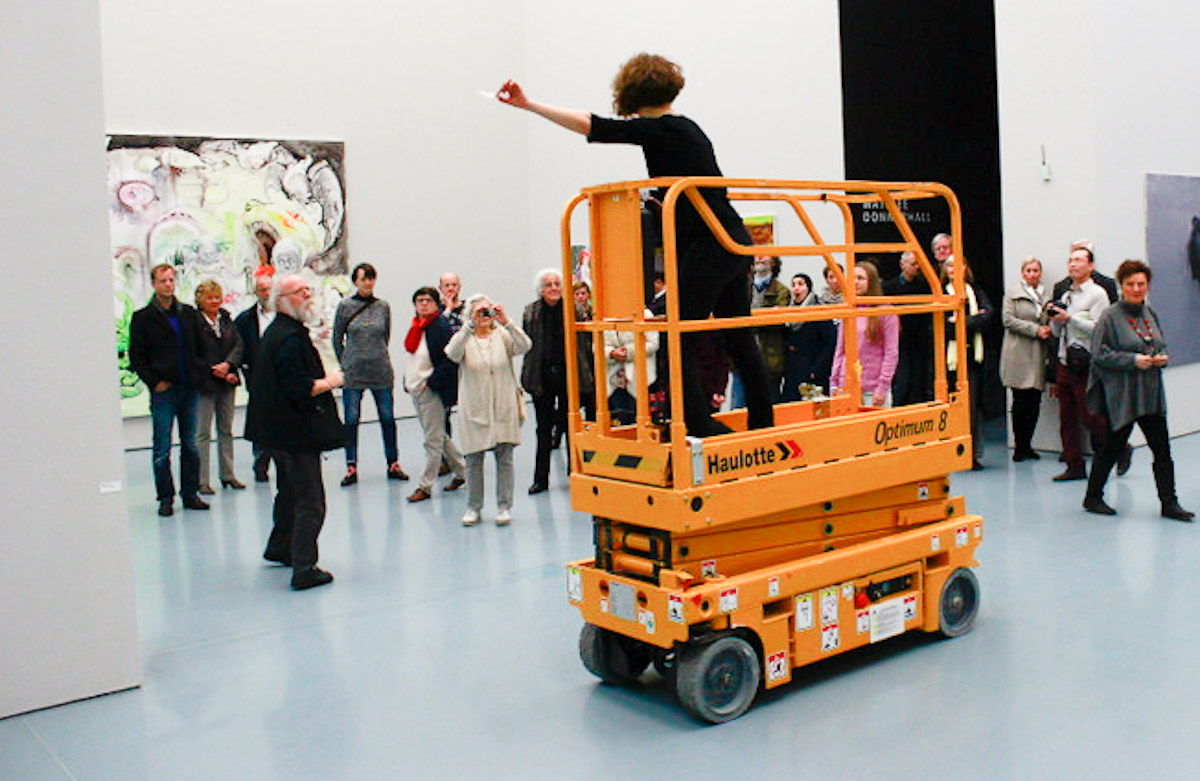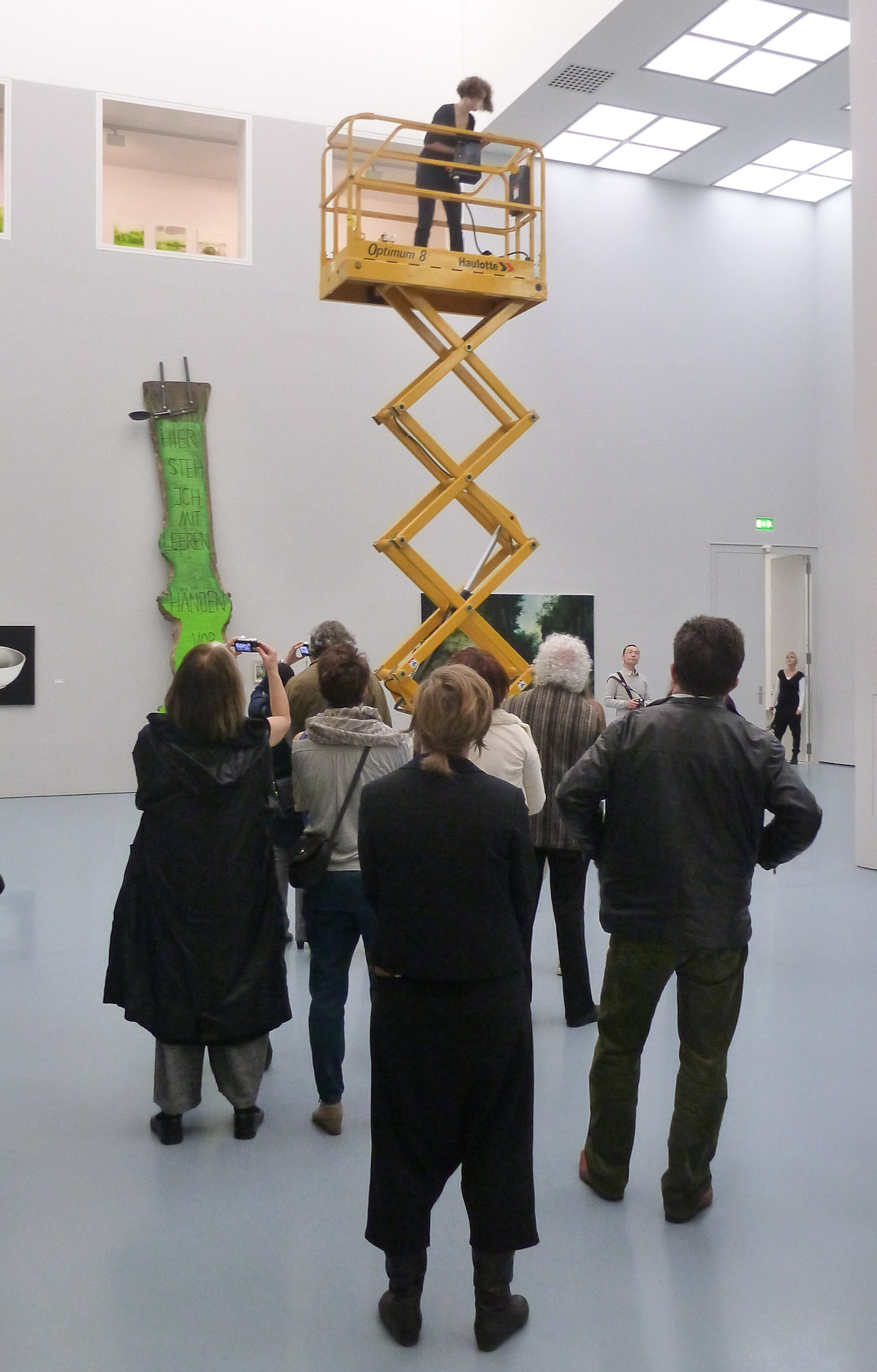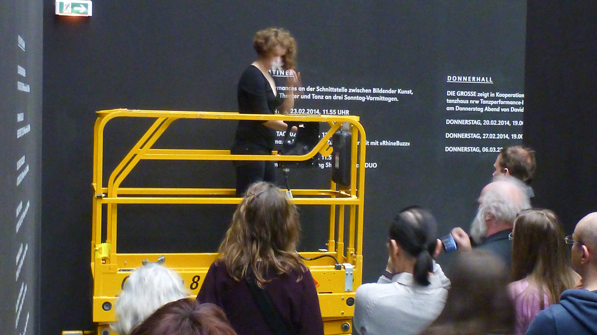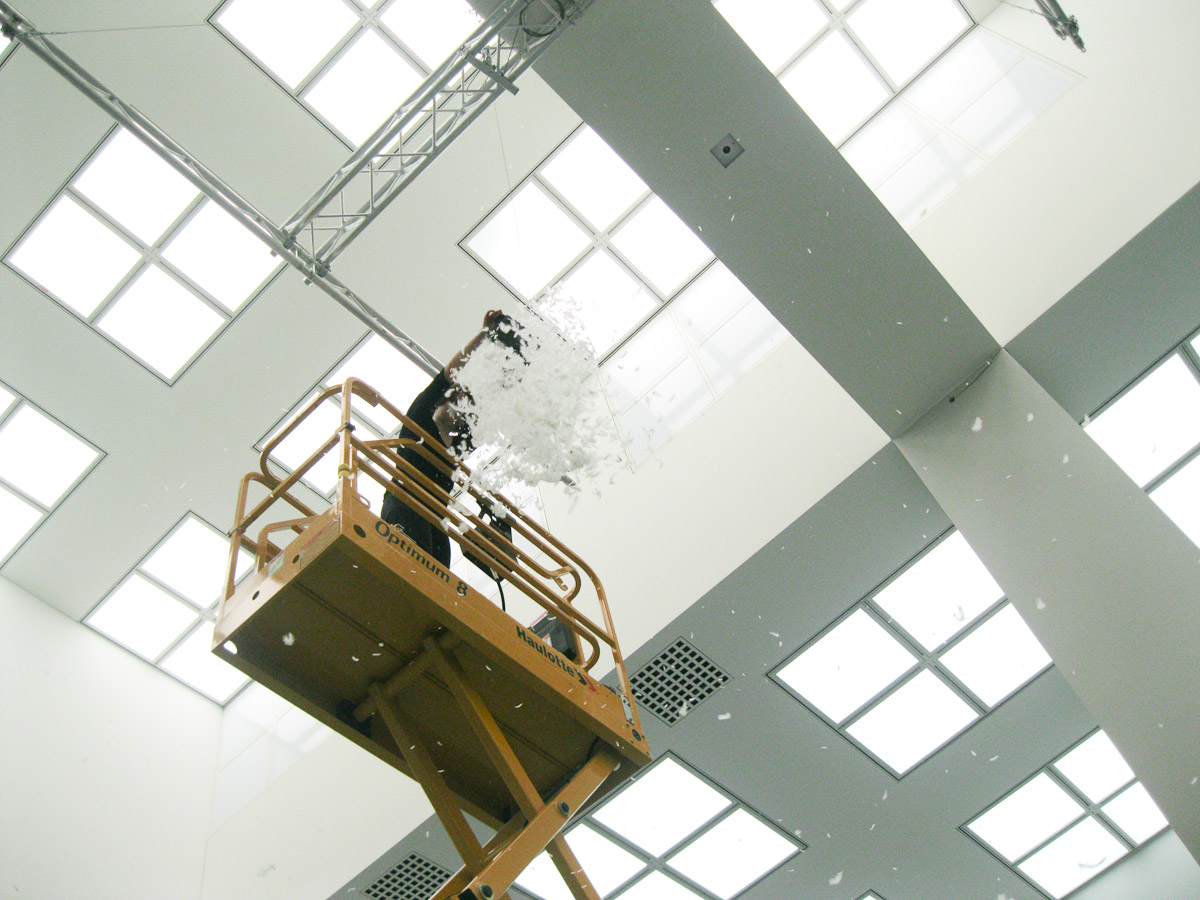 DIE GROSSE Kunstausstellung NRW 2014 Museum Kunstpalast Düsseldorf Working with Haulotte, the moving lifting ramp of the museum and feathers.