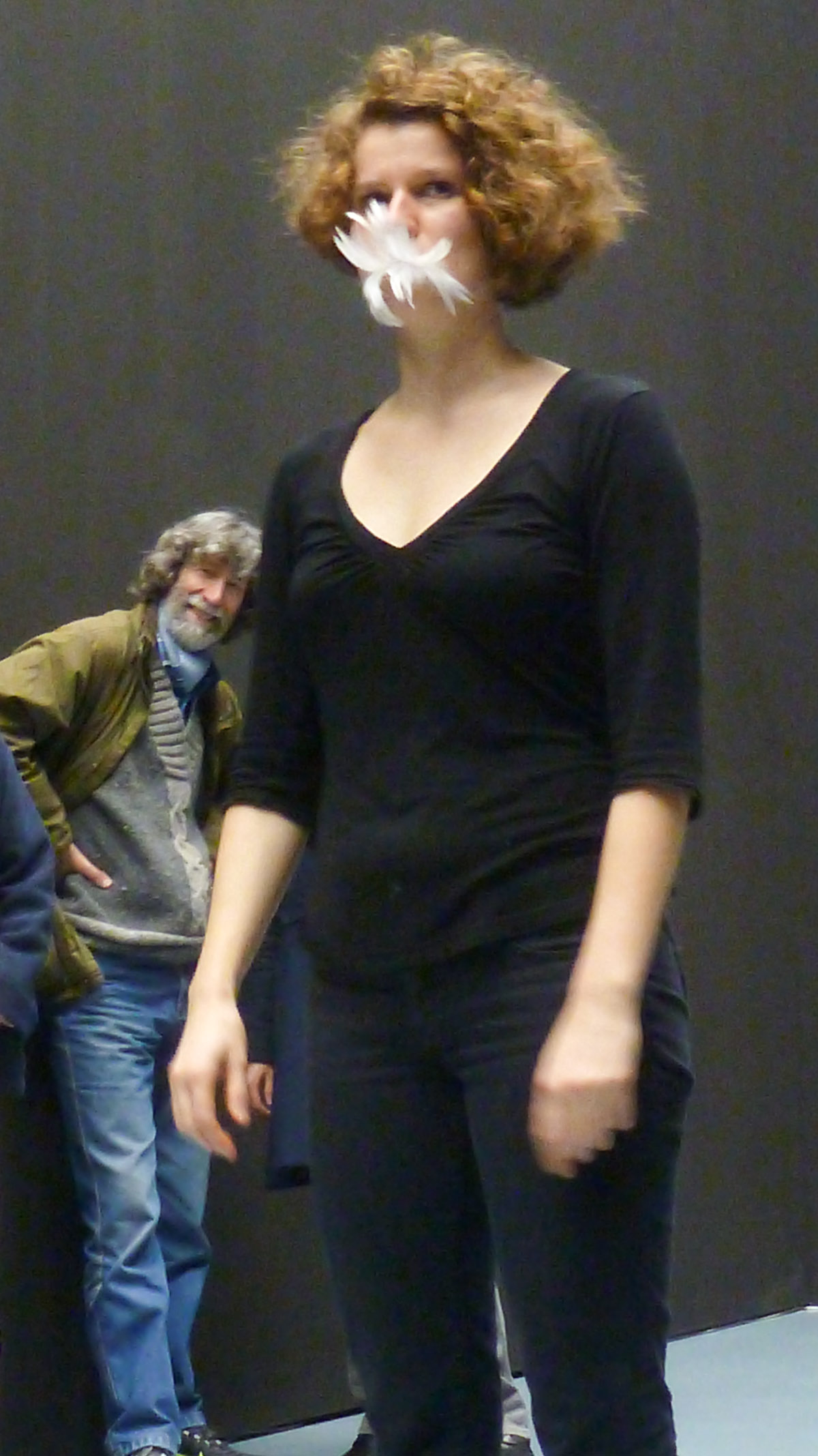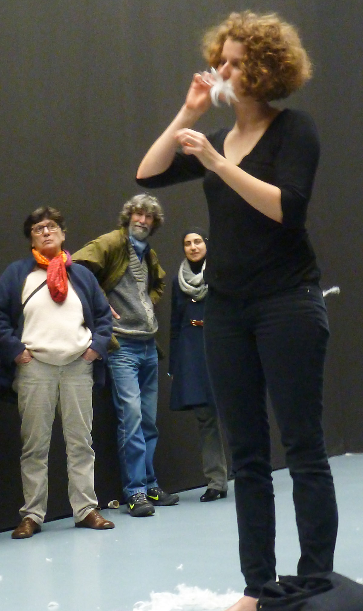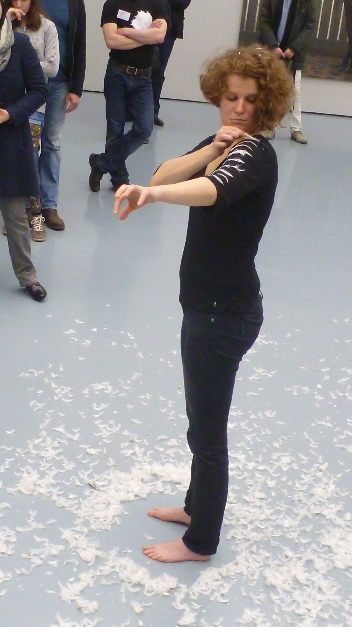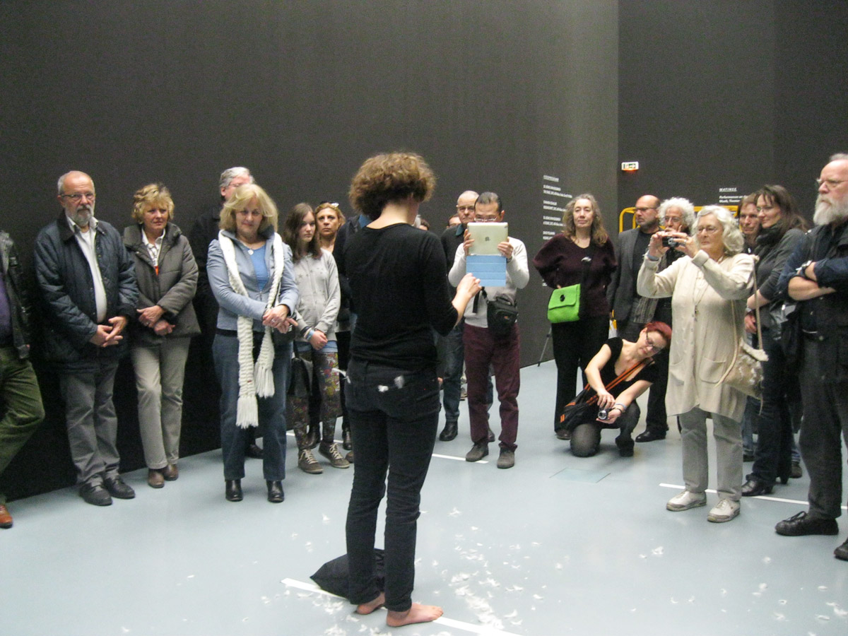 DIE GROSSE Kunstausstellung NRW 2014 Museum Kunstpalast Düsseldorf Working with Haulotte, the moving lifting ramp of the museum and feathers.