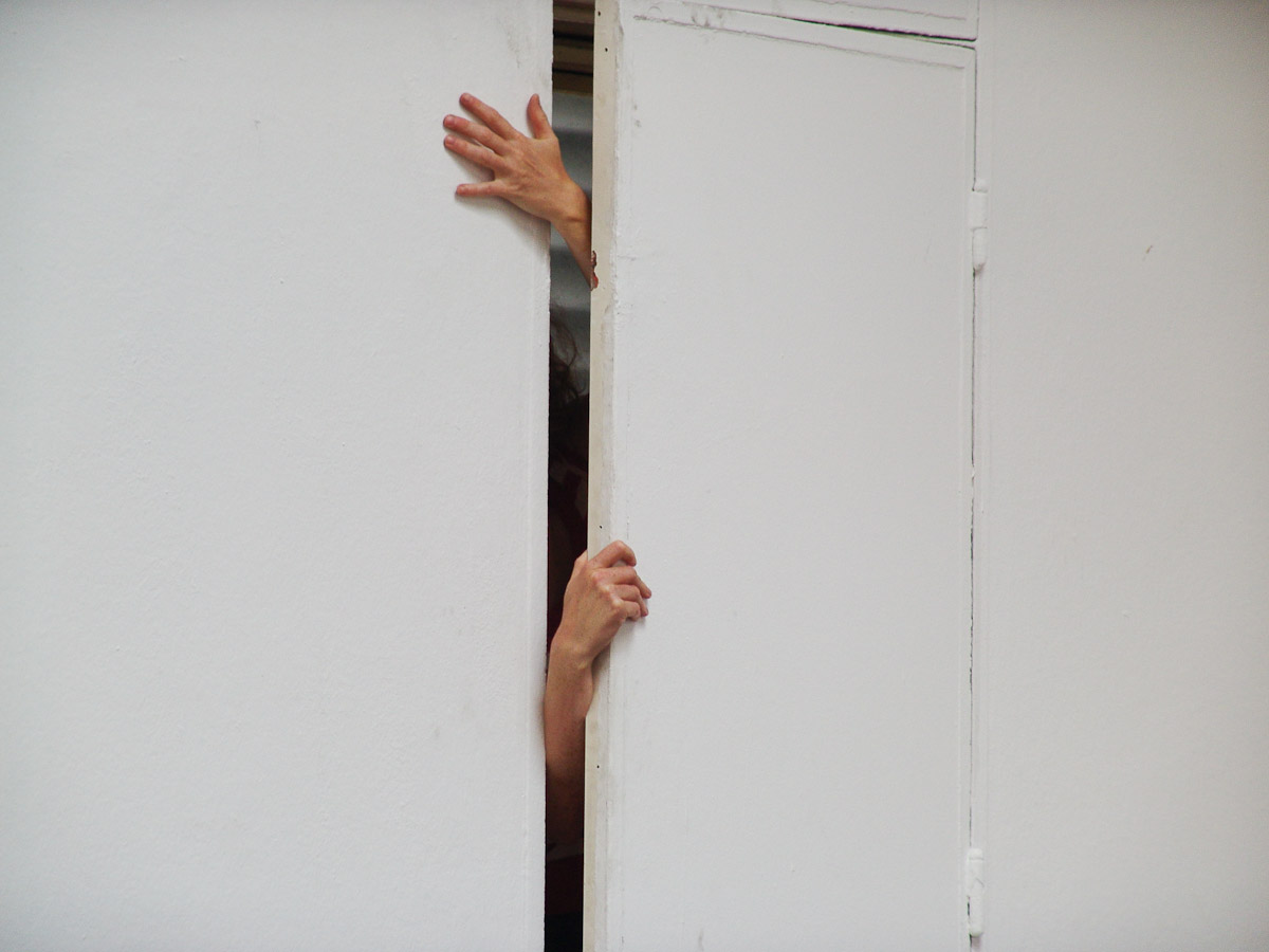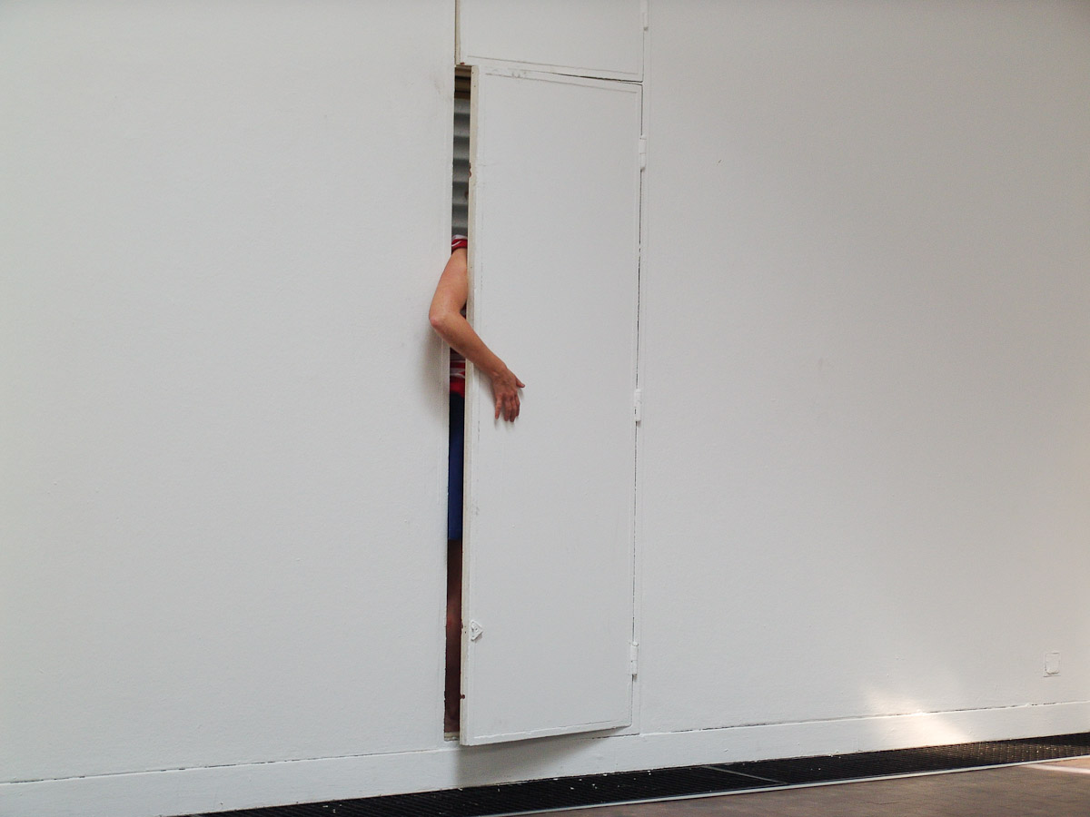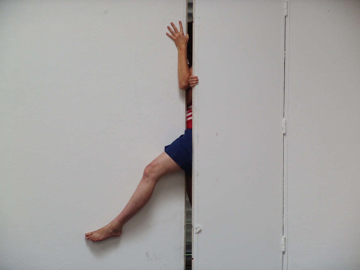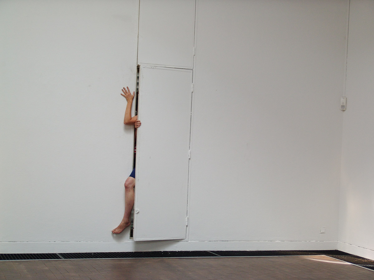 Workshop with Boris Nieslony. Working with the small space. Behind the only vertikal window. A very small left-over-space.