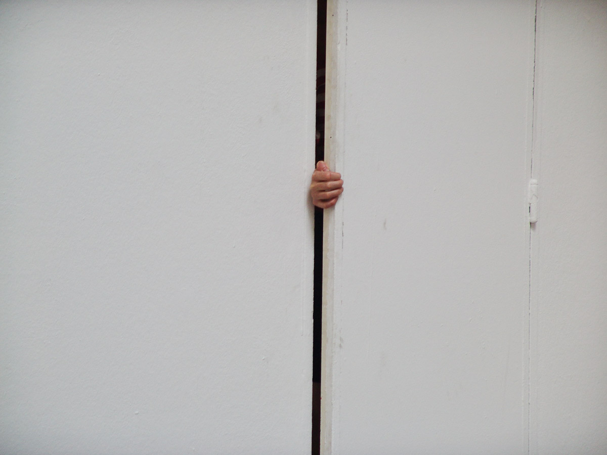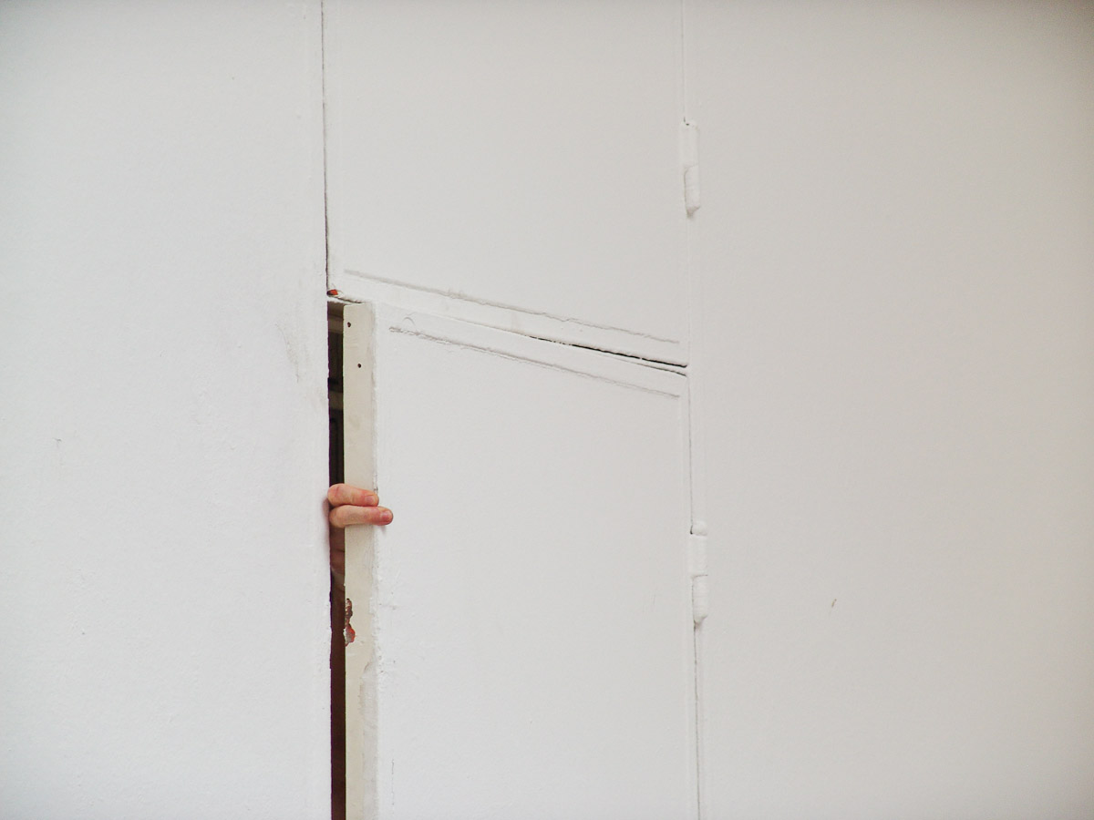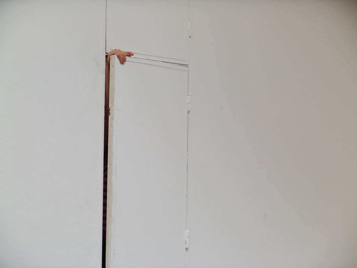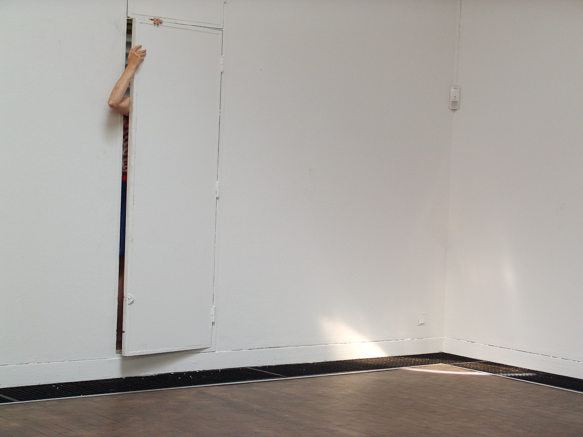 Workshop with Boris Nieslony. Working with the small space. Behind the only vertikal window. A very small left-over-space.