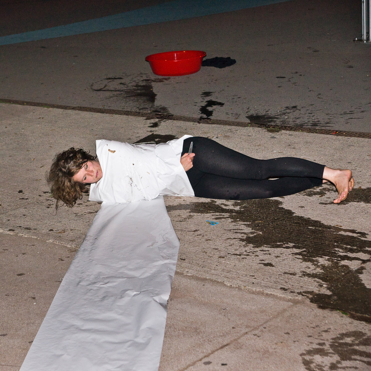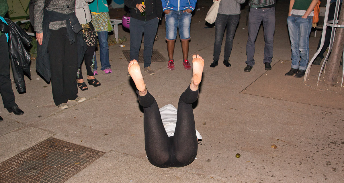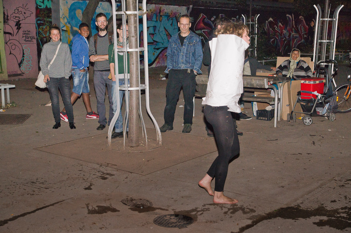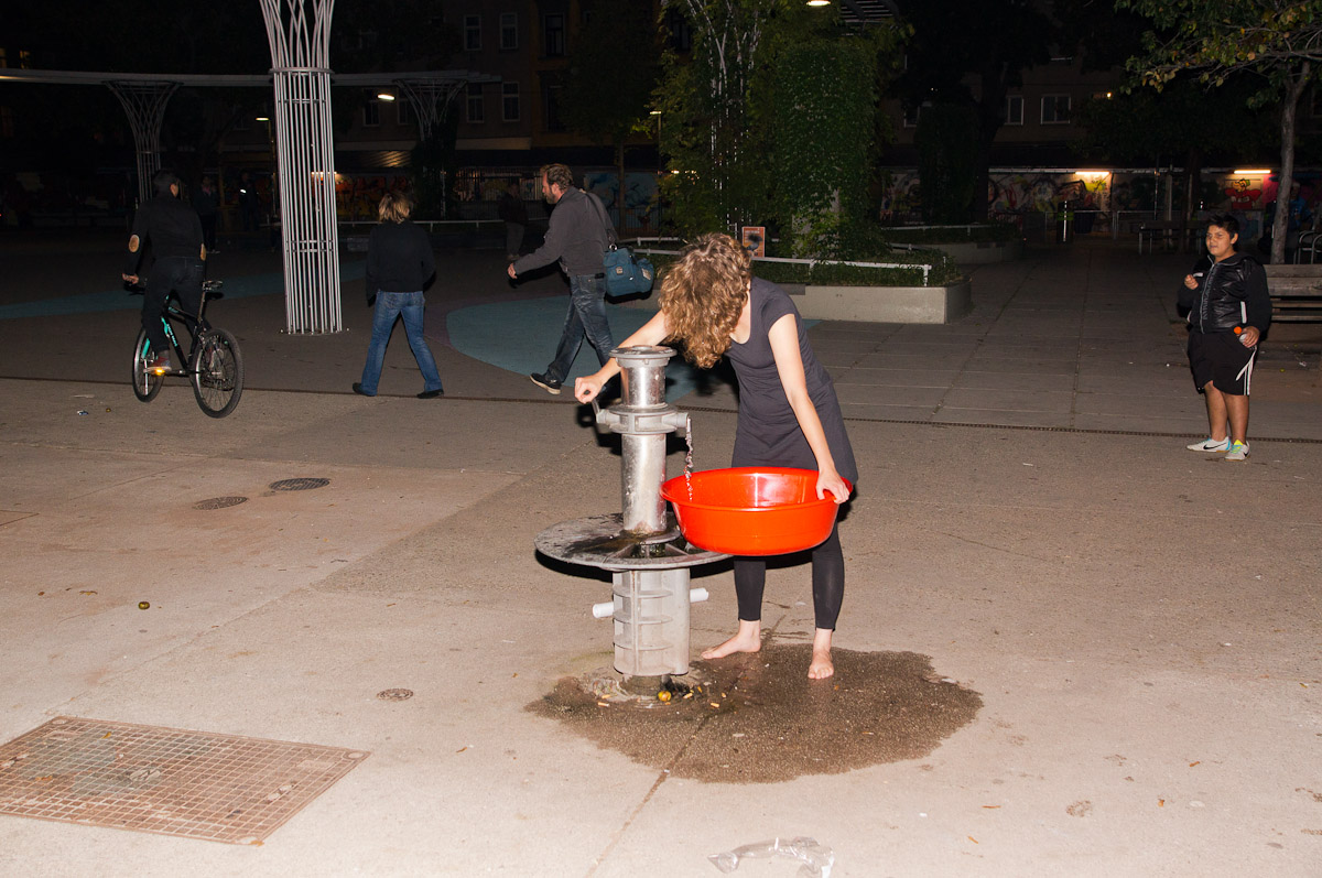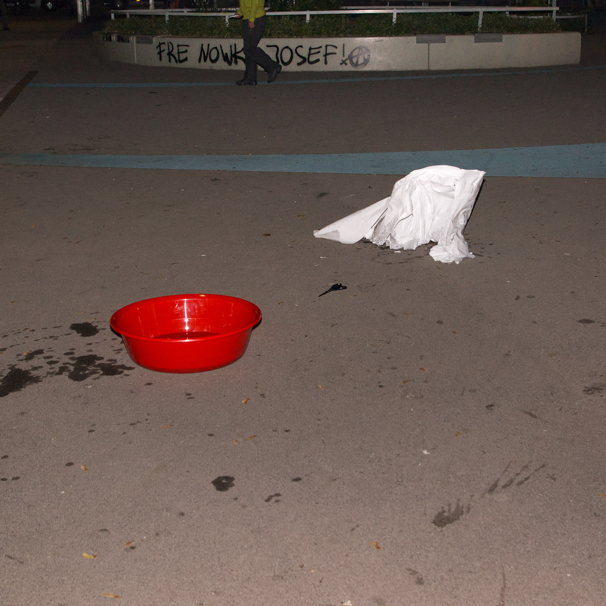 Opening performance of the exhibition Tolle-e-Wut, garde-á-vous? with a plastic bucket which moves me.