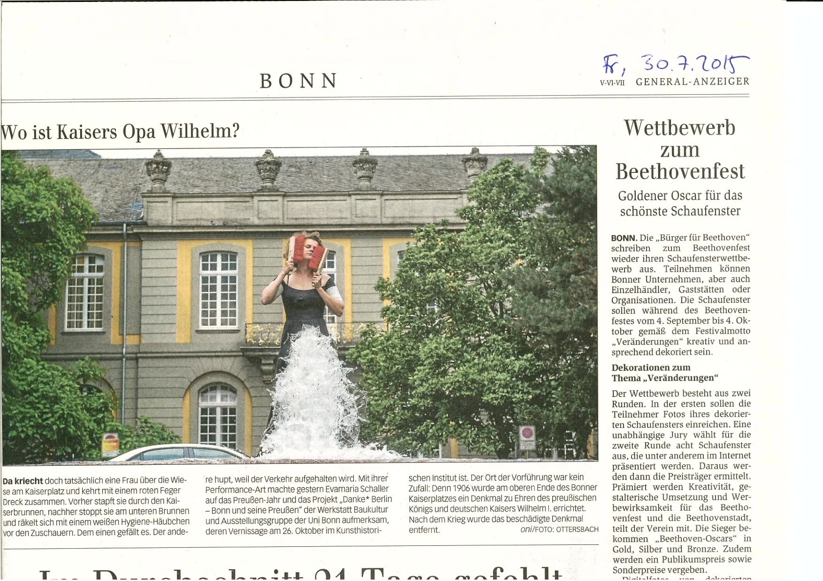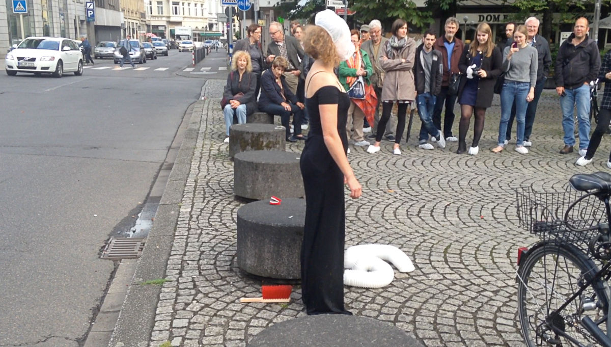 Danke Berlin - Bonn und seine Preußen | BonnWithin the frame of "Danke Berlin - Bonn und seine Preußen": Space and topic specific Performance on the Kaiserplatz Bonn.