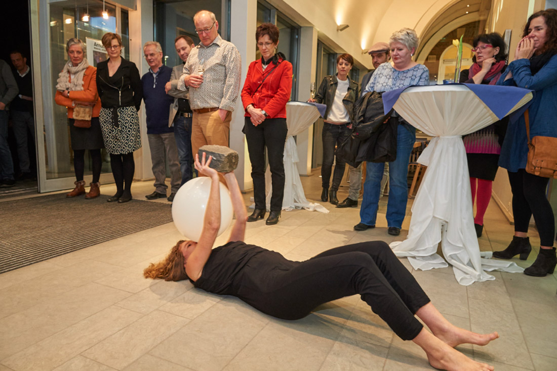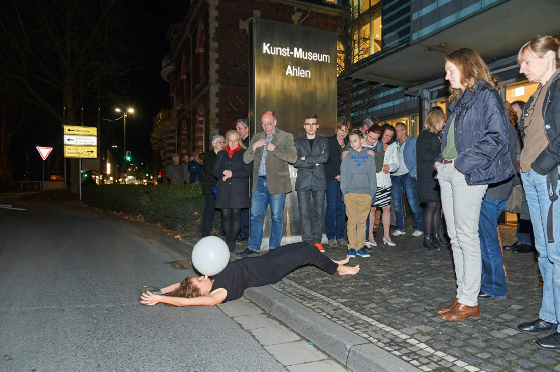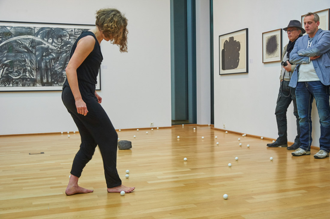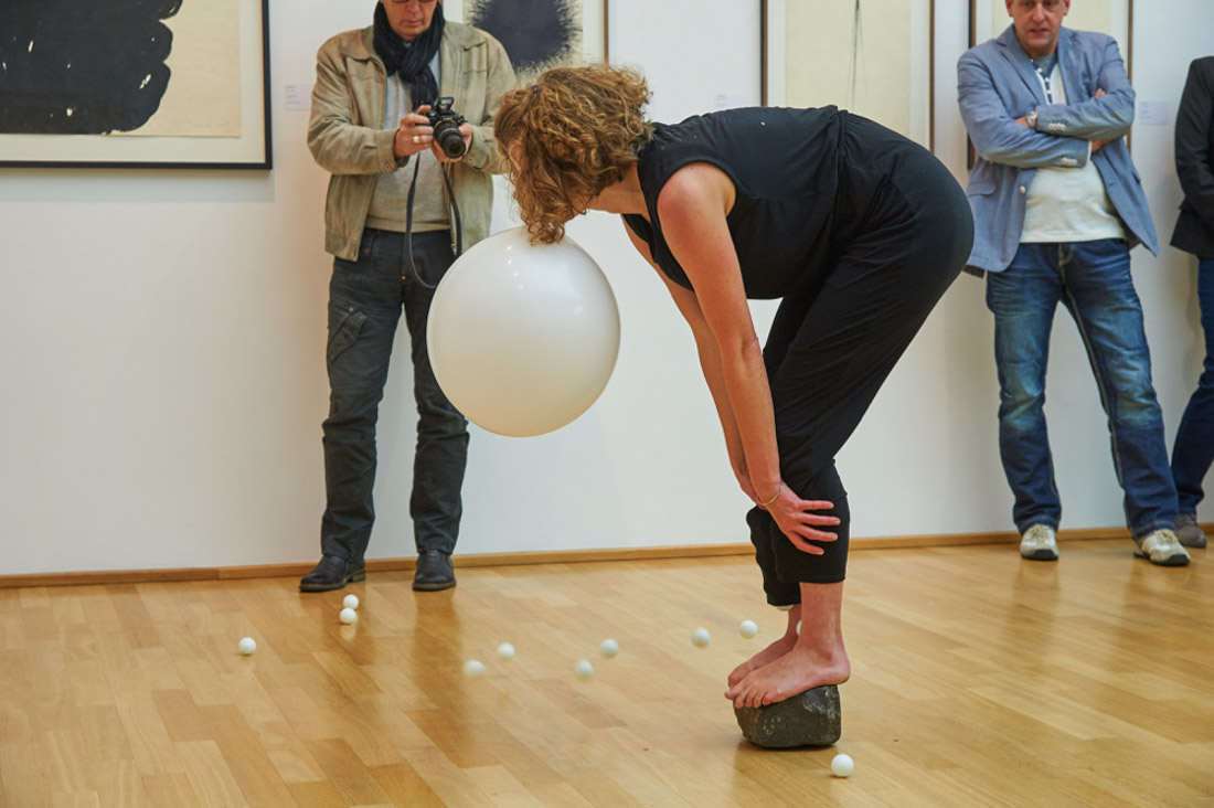 During the exhibition Arnulf Rainer. Malerei, Arbeiten auf Papier the Förderkreis Kunstmuseum Ahlen e.V. invited to a space and work-related Performance.