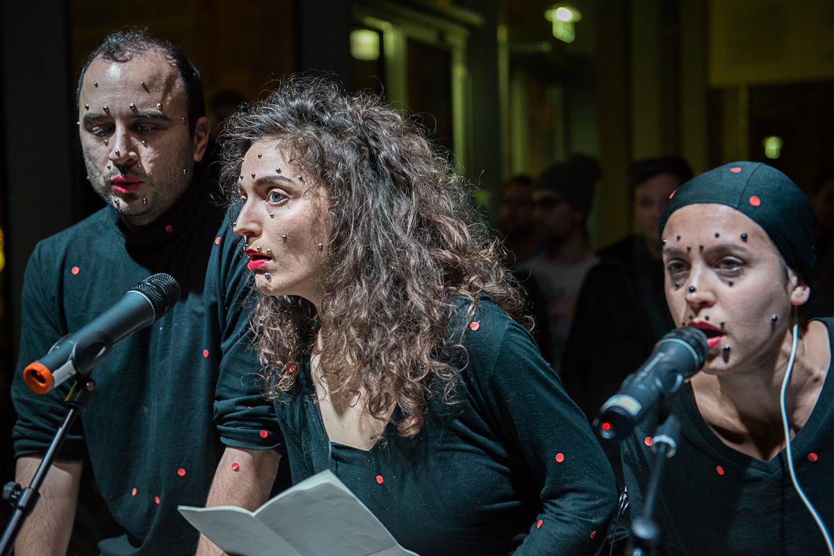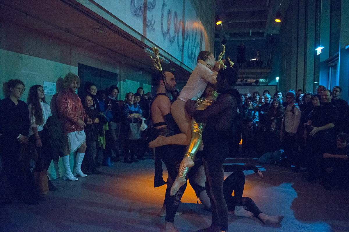 Hier stehen wir, inmitten von Game Shows, Familien Dramen, Found footage, expressionistischen posen, umgestülpter Prosa, Poesie, und Performance. In 8 Miniaturen setzt sich das Performance Lab Striking mit dem Gender Begriff auseinander.