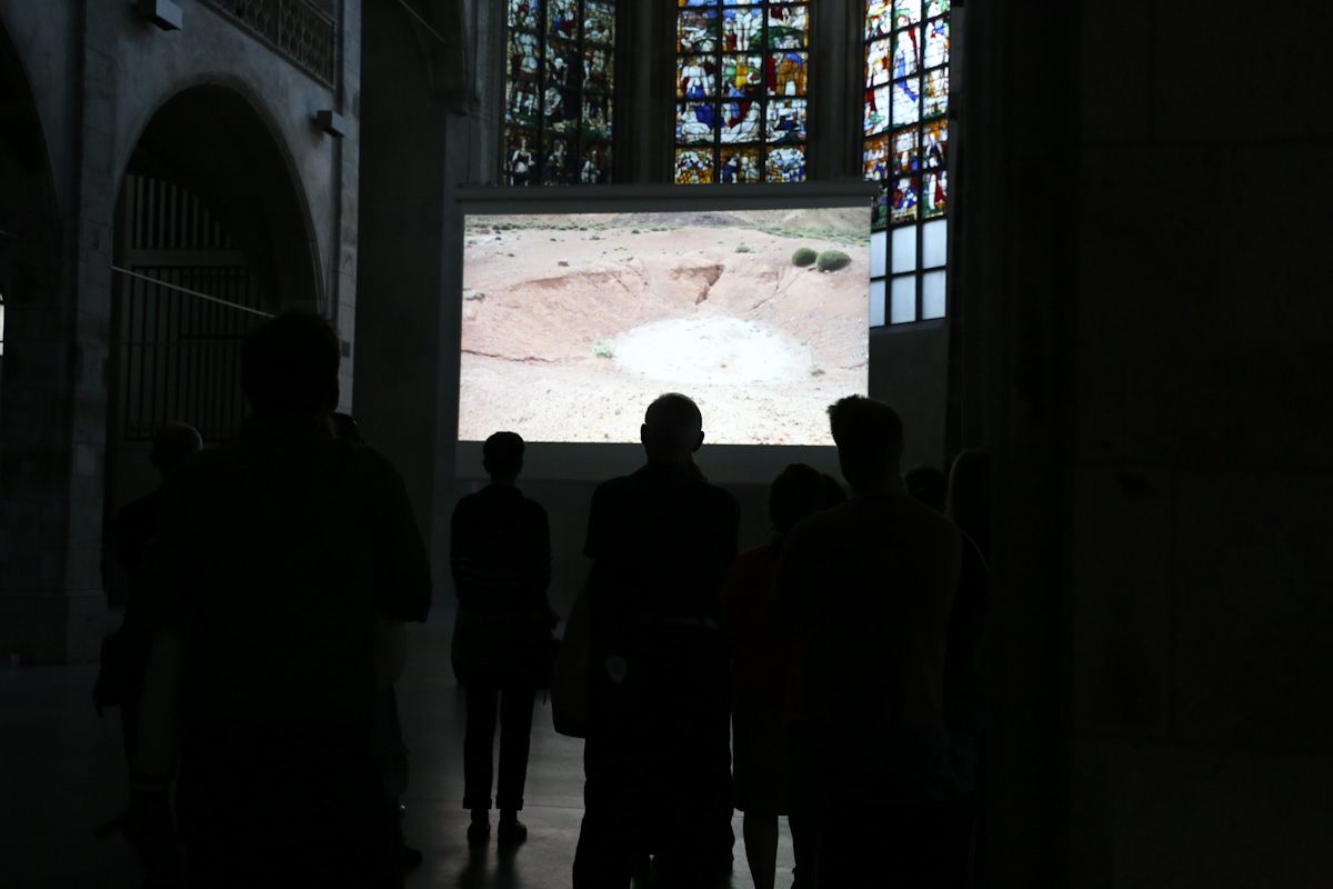 Video works at Kunst-Station Sankt Peter are a tradition. Again and again, artists have expressed themselves with and in the medium in their exhibitions. Since 2000, the space also has a large screen at its disposal, so the presentation of videos becomes an extraordinary experience.