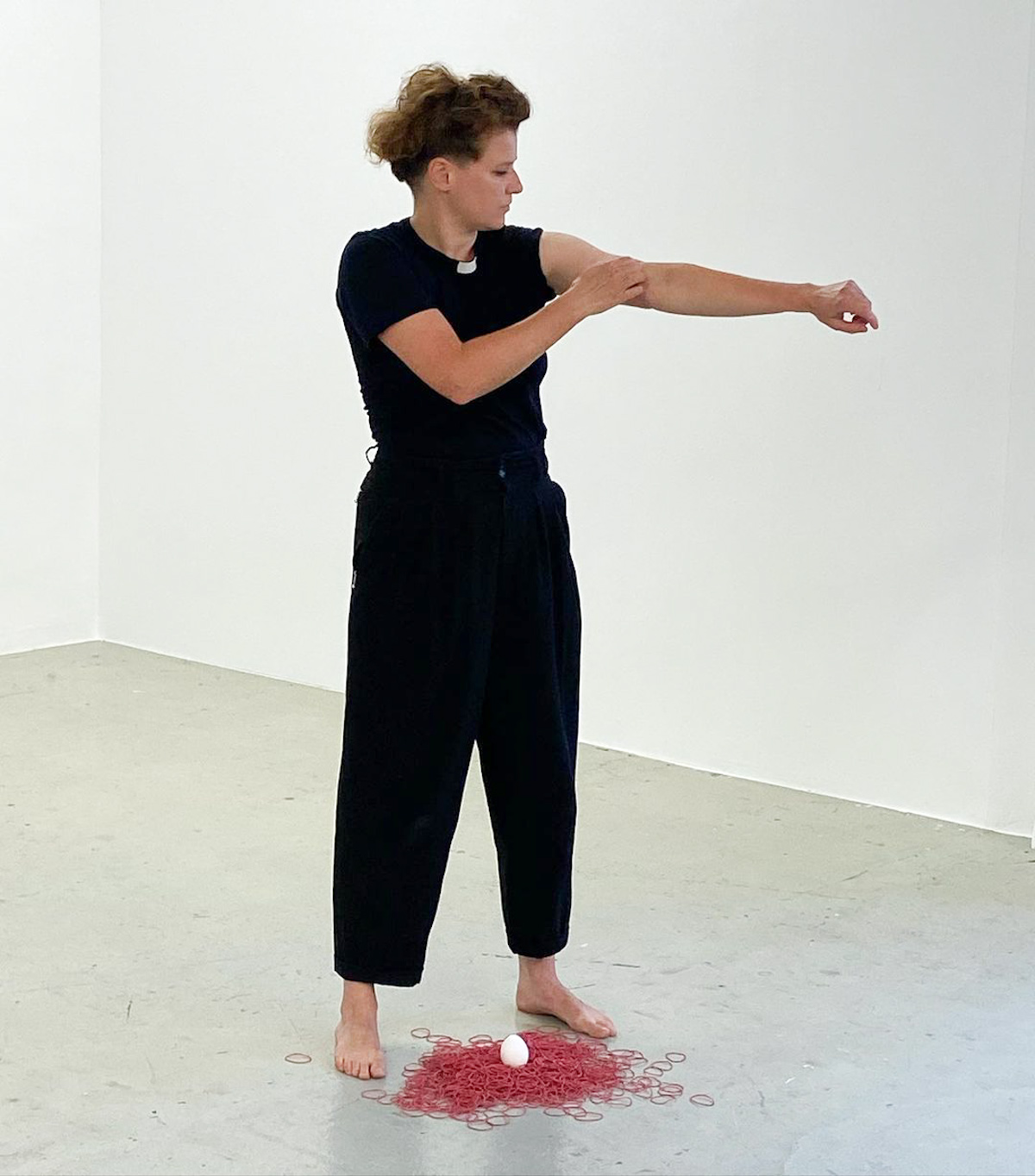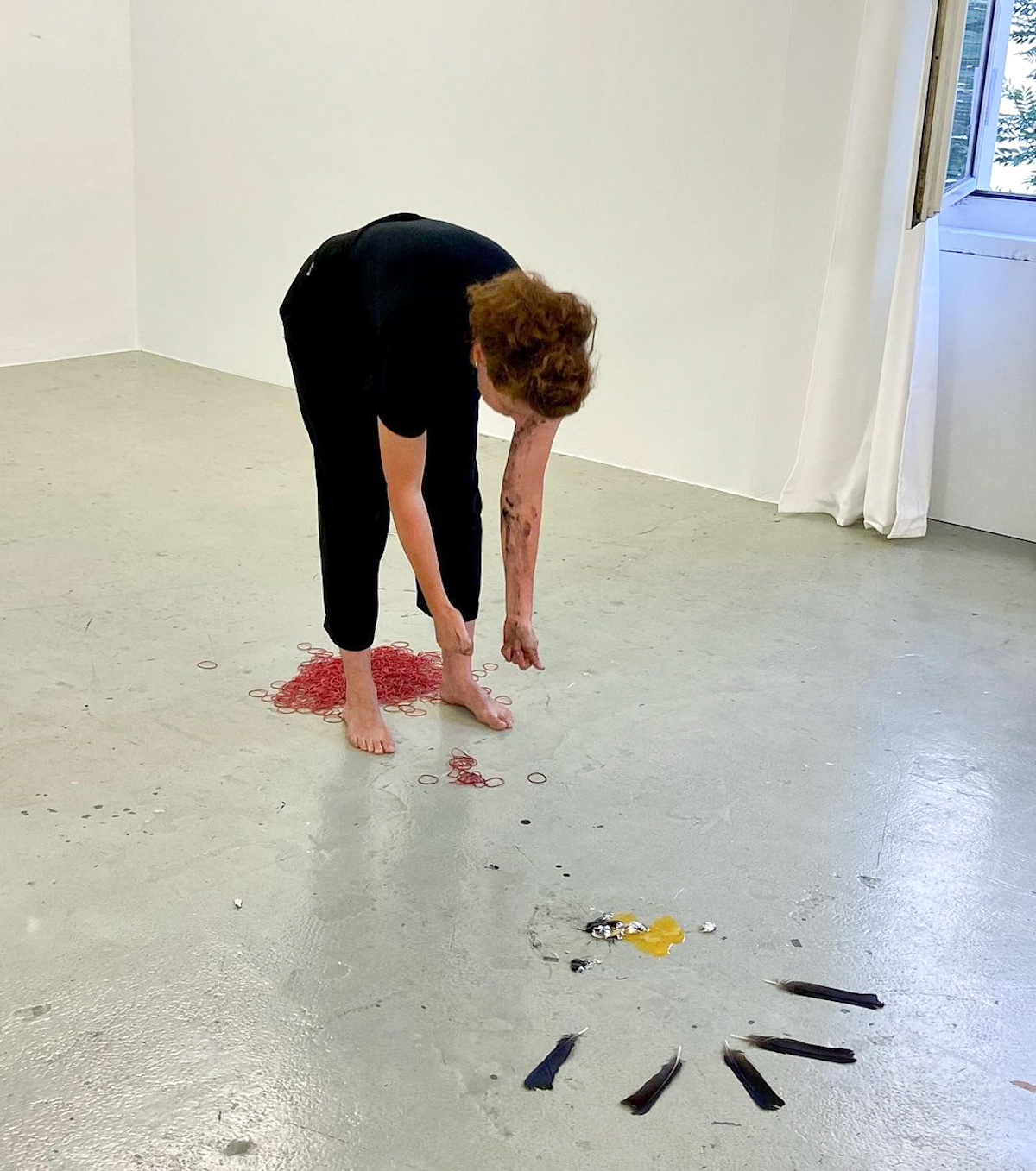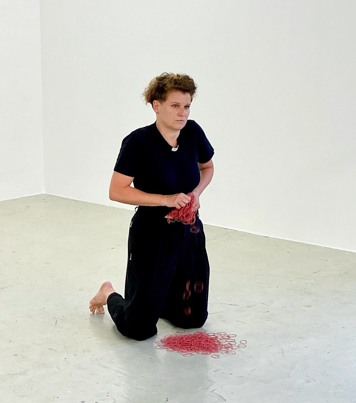 Performance in der Soloshow “Kein Bock, du Sünder!” in der Galerie Petra Martinetz13.08.2021artist talk with Lisa Klosterkötter